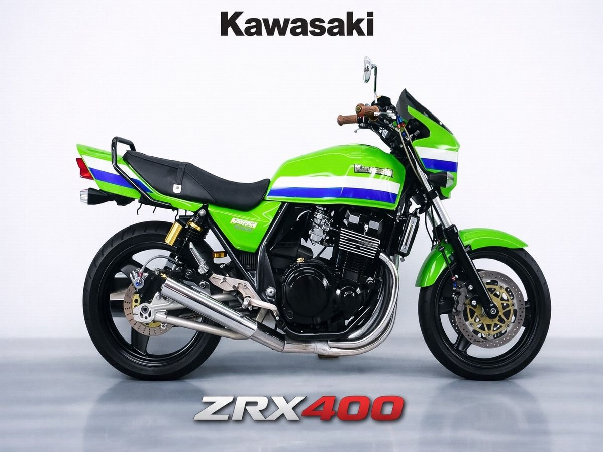 ☆新規車検2年付 KAWASAKI ZRX400 後期 ライムグリーン ショート管マフラー BEETバックステップ 全国配送 YouTubeにて動画見れます 收藏