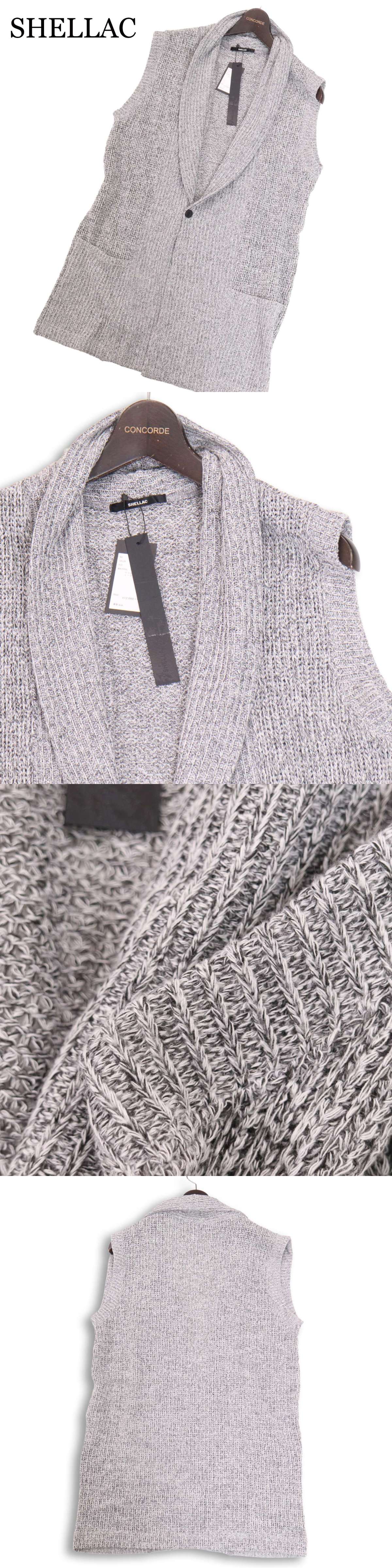 【新品 未使用】 SHELLAC シェラック 通年★ メランジ ショールカラー ニット ロング ベスト ジレ Sz.48 メンズ 灰 收藏