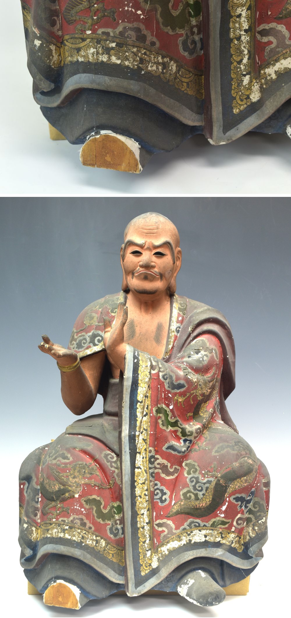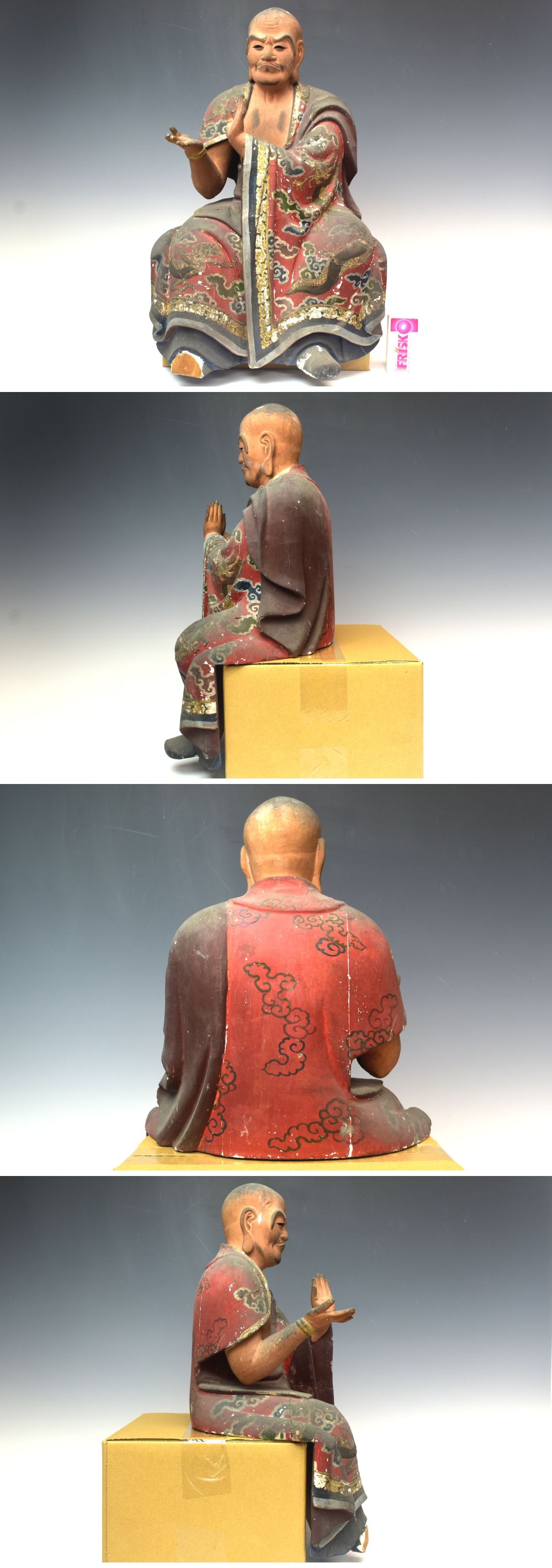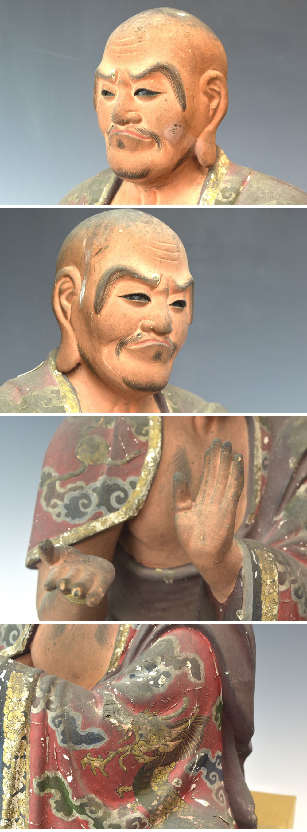 | 商品名 | 時代 木彫り彩色玉眼羅漢像 高さ42cm 八体同時出品 K2251【趣楽】 | ||