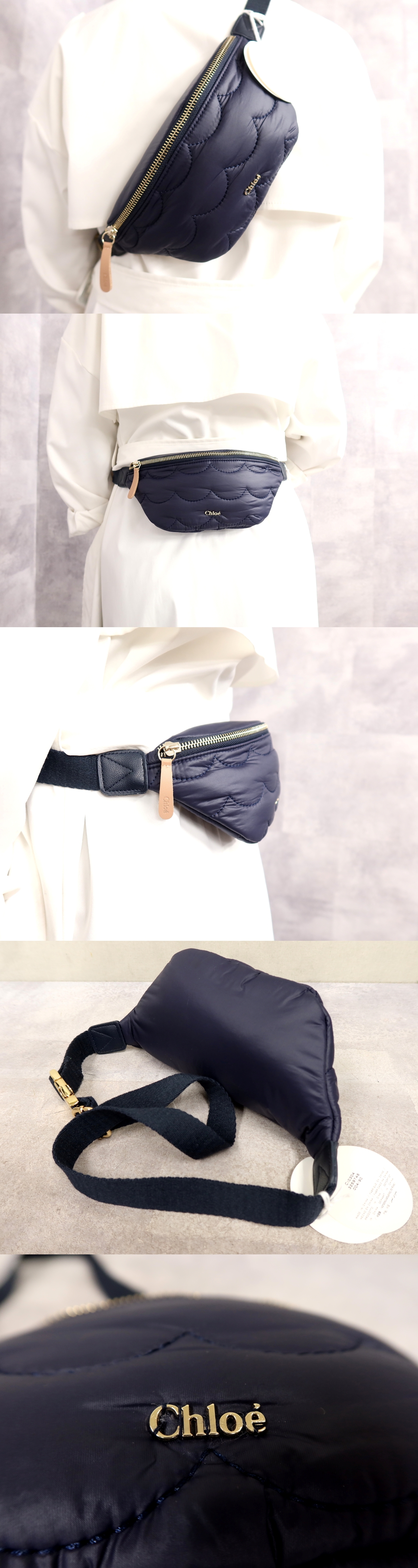 ●超美品●Chloe クロエ●キルティング ナイロン カーフ レザー 本革●ボディ ベルト バッグ●ネイビー ベージュ●ゴールド金具●Js67045 收藏