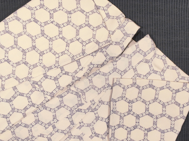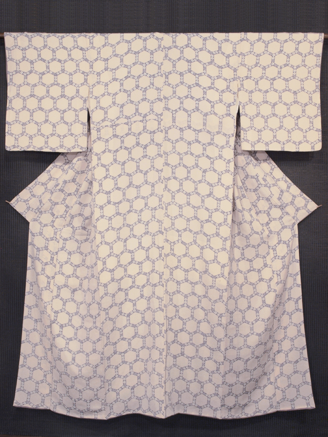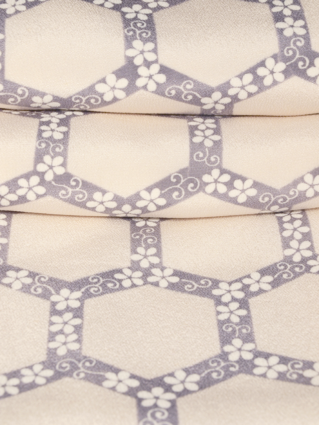亀甲に唐花草文 縮緬 小紋 丈157 TAMC01002 風楽 |
