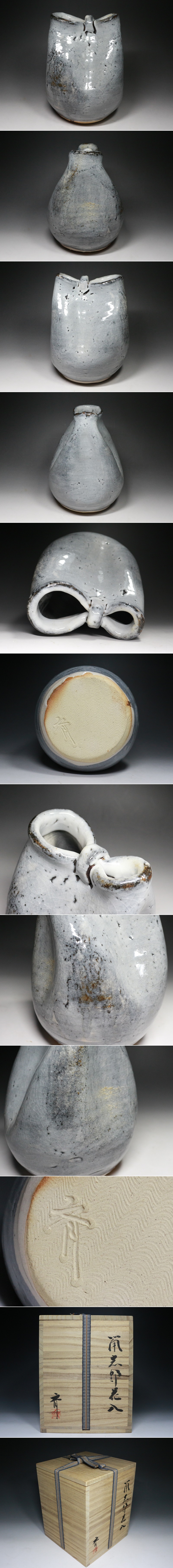 | ■鼠志野■小池斉・花入・花瓶・花器・共箱・百貨店購入品・f835 | ||||||||||||||||||||
