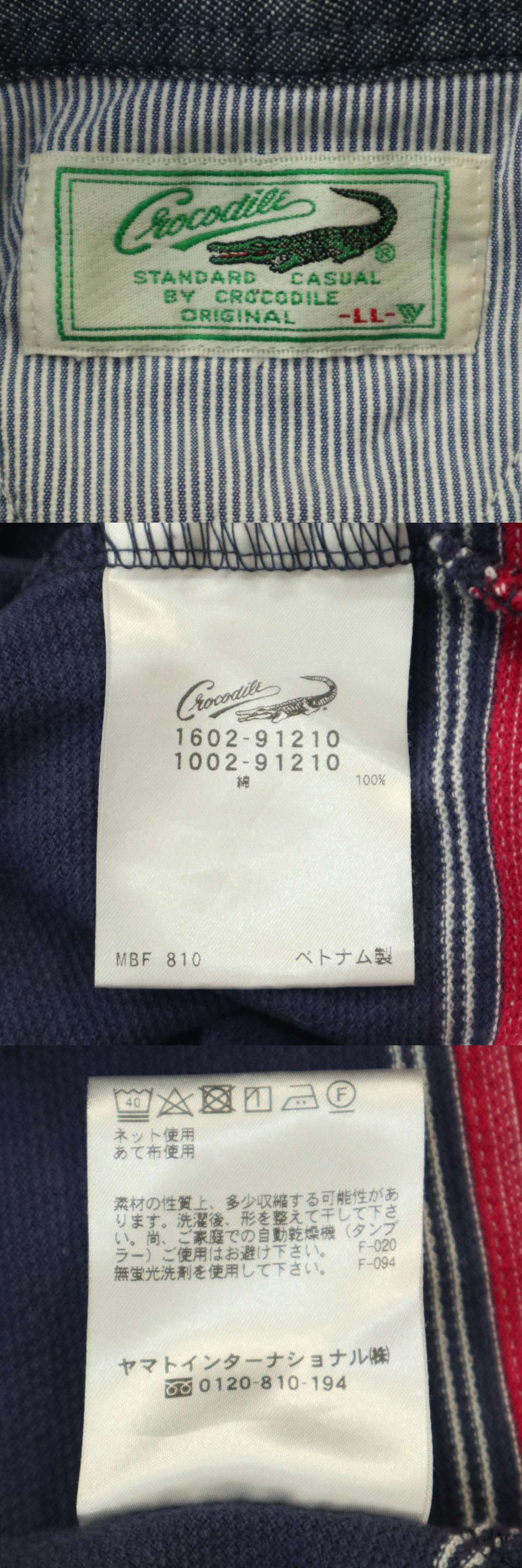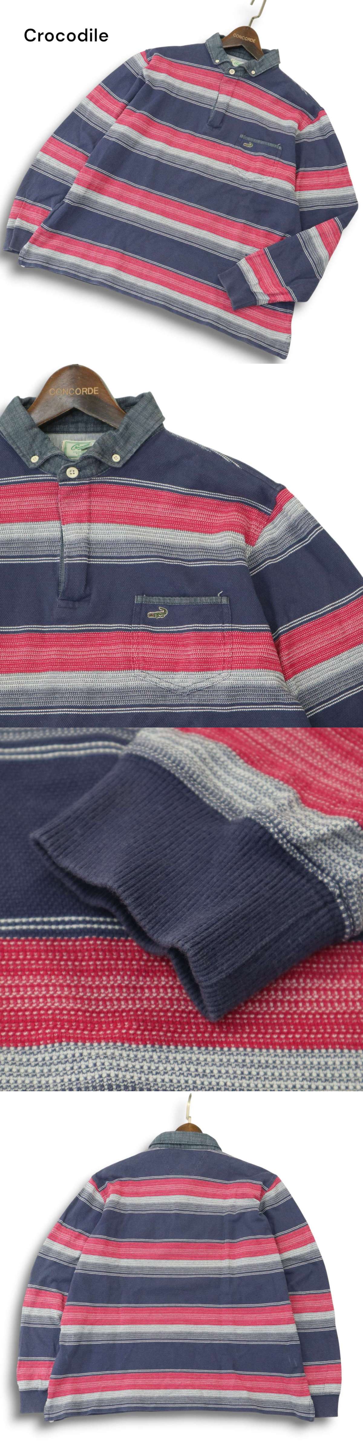 Crocodile クロコダイル 通年★ ワニ刺繍 長袖 ボタンダウン ボーダー ポロシャツ Sz.LL メンズ 大きいサイズ 收藏