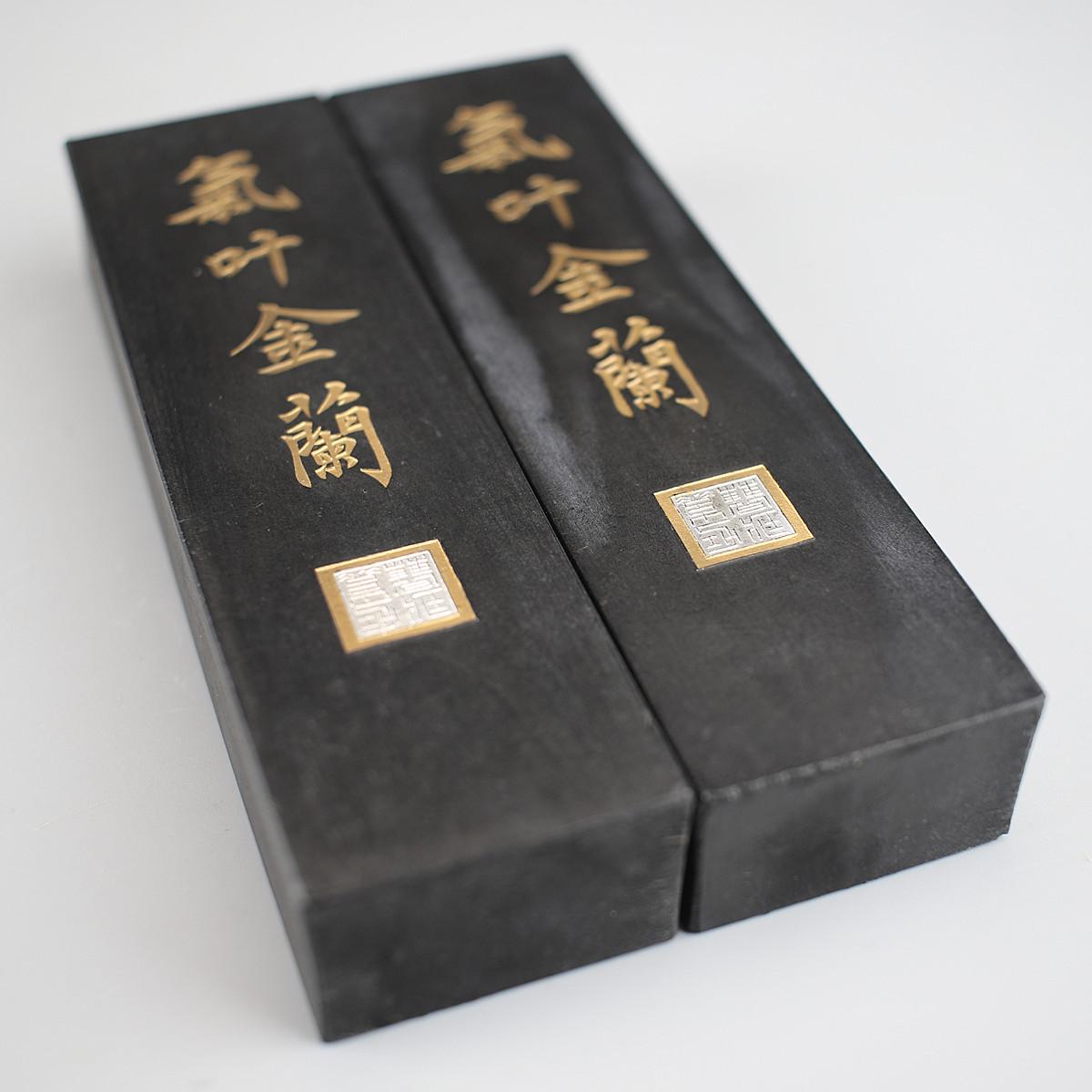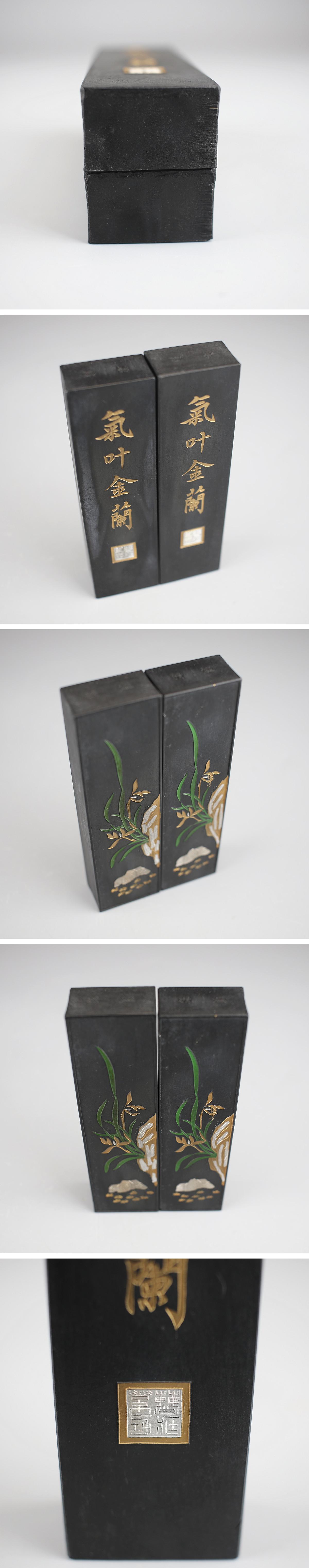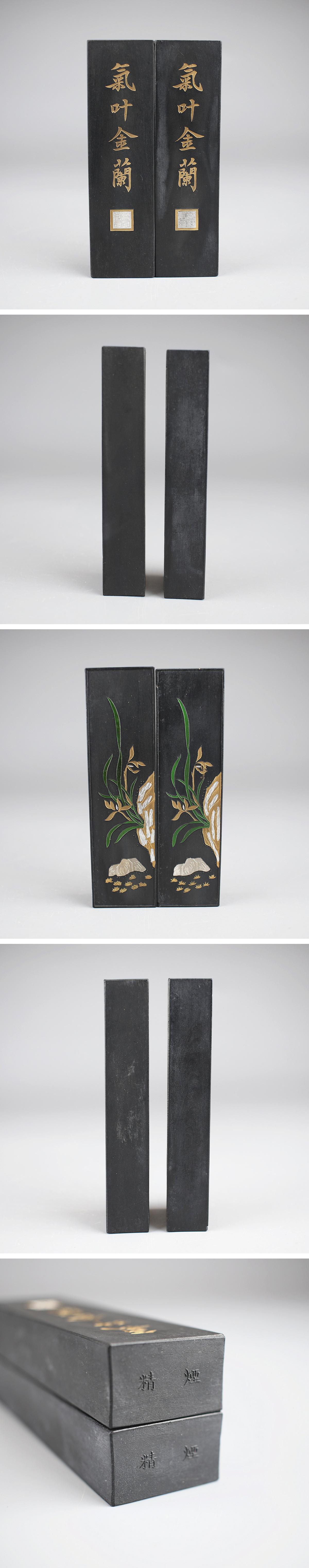 【吉】BA040 唐物 【曹素功】 気叶金蘭 大型 古墨 2点 高12.5㎝/ 美品! 收藏