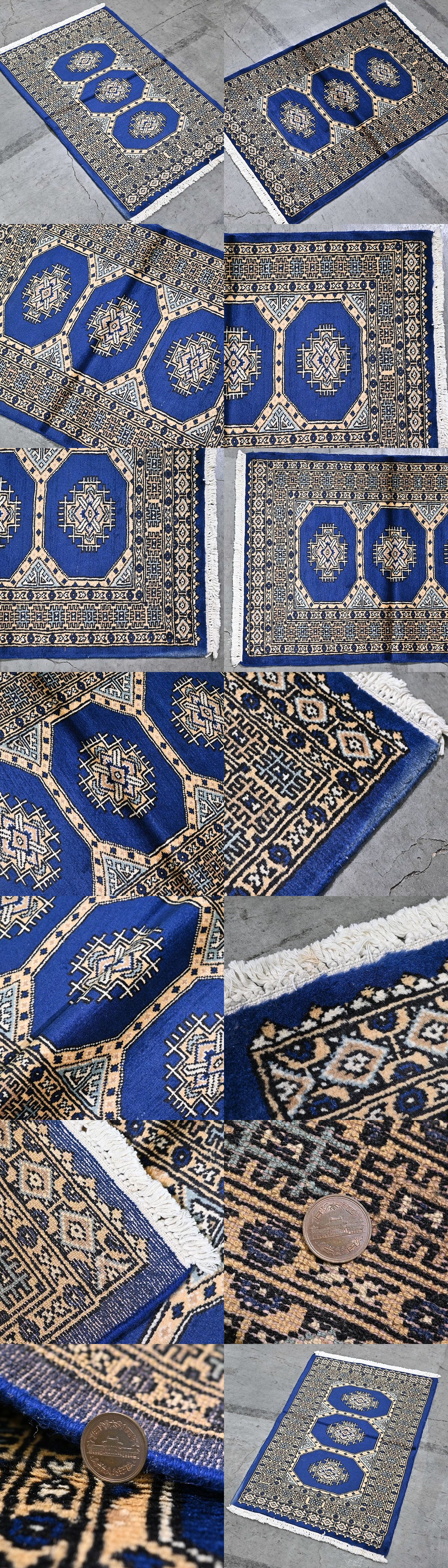 新品 未使用 パキスタン製 手織り ウール絨毯 ラグ ボハラ柄 ギュル文様 ハンドノット 羊毛 カーペット マット ホテル 応接室 P-159 收藏