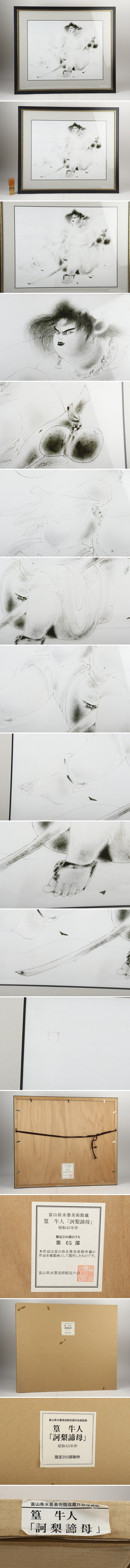 【氷】篁牛人 作 富山県水墨美術館蔵【 詞梨諦母】限定250部のうち第65部 額装 リトグラフ E726 收藏