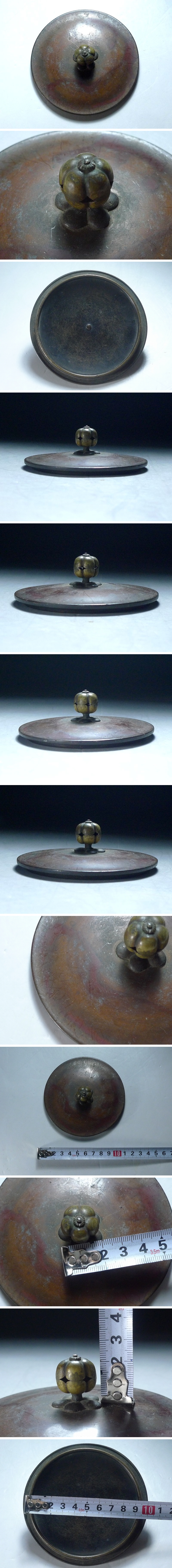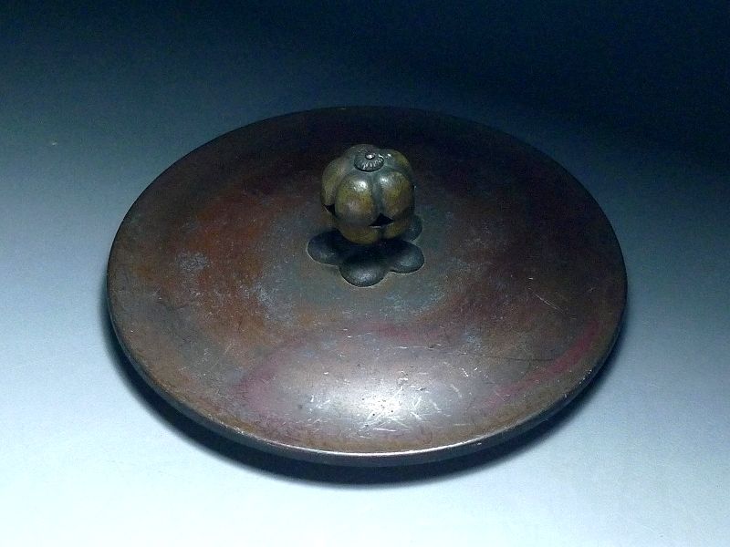 60YT150★茶道具 鉄瓶蓋 蓋のみ 銅製 古銅 梅花透摘 回転式摘み 時代物 鉄瓶蓋 茶釜 收藏