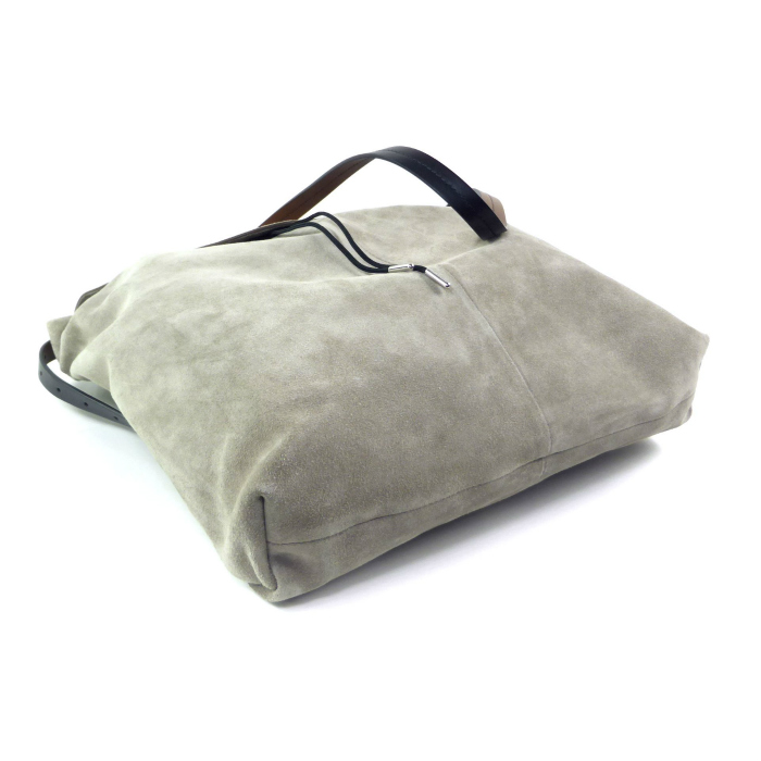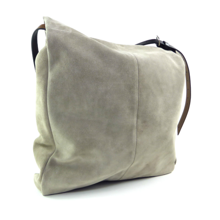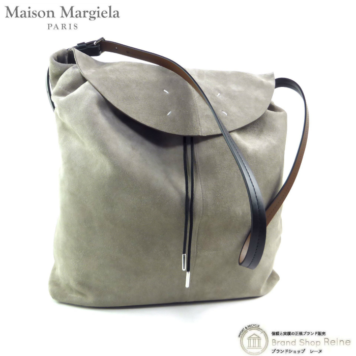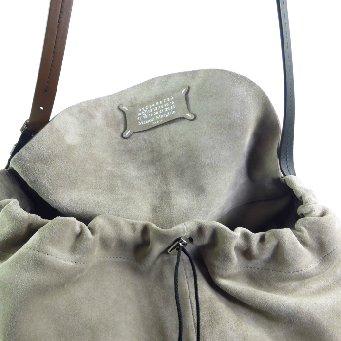 柔らかなスエードとリラックスしたシルエットで仕立てたメゾン マルジェラのドローストリング ホーボー スモールバッグ。
