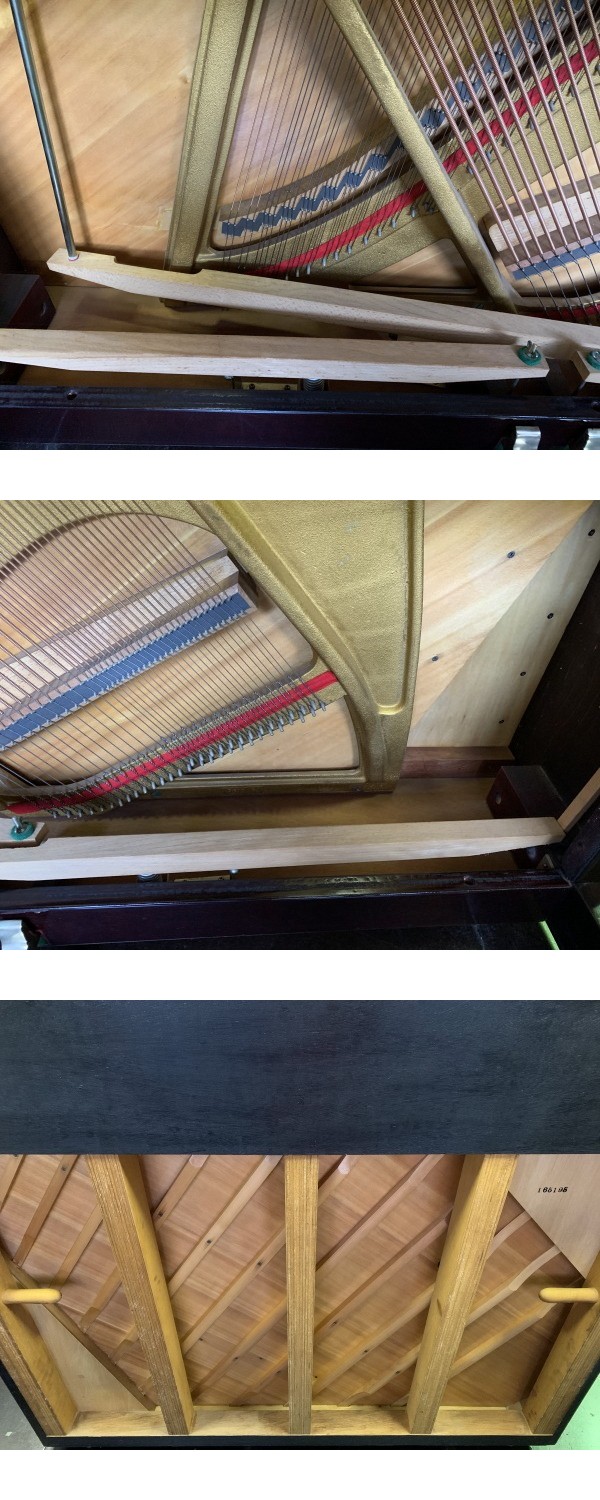 | 補 足 | 東洋ピアノ製造株式会社製造のLAZARE 130Wです。 猫脚がおしゃれな濃いマホガニー色のピアノで、約40年ほど経っていますが年数の割に状態も良くまだまだ十分に使っていただける1台です。 これからピアノを始める方や電子ピアノから買い替えを検討されている方におすすめします♪ 内外装各部、整備・クリ-ニング・調整済みです。 内部アクションに関しては、清掃及び再調整済みです。サビ等も出来る限りキレイにしていますが、多少はございます。 外装はクリーニングをしていますので汚れ等はございませんが、あくまでも中古品ですので多少の傷はあります。 鍵盤蓋に一部傷があります。 完璧に分からなくまではしていませんが、出来る範囲で簡単な補修をしています。 基本的には大きな傷も少なく状態の良い部類かと思います。 お問い合わせいただければ、キズ部分等の写真を送ることも可能です。 当店が販売する中古ピアノは置かれる環境にもよりますが定期調律をすれば現状のままで15年から20年はご使用いただける状態にまで整備しております。 限定、新生活応援特別セール価格にて出品中です♪ お得なこの機会にぜひ! 店頭表示価格238,000円。 ※椅子は付属しません。 椅子が欲しい方は、新品椅子を別途15,000円(税込)で販売いたします。 運送据付費が別途必要です。 運送据付費を確認したい場合は、直接お問い合わせいただくか、質問欄よりお問い合わせ下さい。 詳しくはお問い合わせ下さい。 入札、落札前の指弾も受け付けておりますのでお問い合わせ下さい。 尚、落札後のキャンセルは落札価格の10%をご請求させていただく場合もあります。 よろしくお願いいたします。 |
