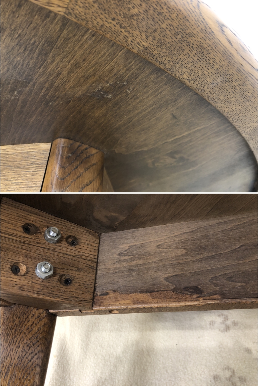 こちらは CONDEHOUSE カンディハウス Runtom ルントオム ダイニングテーブルです。 中古品です。 【CondeHouse(カンディハウス)】 1968年創立。日本を代表する家具の名産地・北海道旭川にあり、 旭川ブランドの中心的存在と言うべき総合家具ブランドです。 素材、構造、デザインにこだわり、上質で愛着をもって使い続けることの出来る ロングユースの家具造りを行っています。 また、海外拠点も展開しており、高い評価と共に世界中でカンディハウスの家具が愛されています。 【デザイナーについて】 スチウレ・エング(Sture Eng)は、北欧モダンが国際的に評価を高めた 20世紀後半(1960~80年代)に活動した家具デザイナーです。 華美な装飾を抑え、使いやすさ・耐久性・量産性を重視した実務的なデザインを多く手がけました。 直線を基調とした軽やかなフォルムと、日常使用を前提とした合理的な設計が特徴で、 木工精度の高い旭川家具との相性も非常に良いデザインとされています。 Runtom(ルントオム)は、北欧家具らしい静かな存在感と実用性を兼ね備えた、 「流行に左右されず長く使えるテーブル」を体現した代表的なシリーズのひとつです 今回はそんなカンディハウスのダイニングテーブルが入荷しましたので出品致します。 北海道・旭川家具らしい、丁寧なつくりが感じられる一台です。 1973年頃の発売以来、50年以上にわたり支持され続けている、 カンディハウスを代表するロングセラーシリーズ 「ルントオム(Runtom)」のダイニングテーブルとなります。 デザインを手がけたのは、スウェーデンのデザイナー スチウレ・エング氏。 北欧デザインのエッセンスを取り入れた、有機的でやわらかなフォルムが特徴です。 天板は杢目の方向を変えて張り合わせた美しい仕上がりで、 円形テーブルならではの広がりと上質感を演出しています。 エッジ部分は掌に自然に沿う程よい厚みがあり、立ち座りの際にも心地よい触感です。 脚部は曲木のような美しい曲線を描くデザインで、 エレガントでありながら空間に圧迫感を与えません。 ダイニング全体をやさしく、洗練された印象にまとめてくれます。 天板は直径 110cmで、4人で囲んでも窮屈さを感じにくく、実用性にも優れたサイズ感です。 ご自宅のダイニングはもちろん、 ワークスペースや書斎、カフェ・店舗・オフィスなど、幅広いシーンで活躍します。 長く愛され続ける理由が伝わる、完成度の高い一台です。 また、再良市場では2026/01/25現在、同シリーズのダイニングチェアも出品しております。 あわせてご検討いただければ、統一感のある空間づくりが可能です。 詳しくは下記リンクよりご覧ください。 【コンディションについて】 コンディションにつきましては以下の画像も併せてご覧ください。 【天板裏面キズ】 【天板のキズ補修あと】 上記のような前オーナ様による補修痕、 天板に小キズ・スレなどの使用感はありますが、 割れなどの目立つ大きなダメージはなく、全体的に状態は良好です。 まだまだ長きにわたってお使いいただけるお品です。 木目と、丸みを帯びた天板が魅力的なダイニングテーブルです。 是非この機会にご検討ください。 皆様のご入札をお待ちしております! セット可能な同シリーズの家具を同時出品中です!(2026/01/25現在)