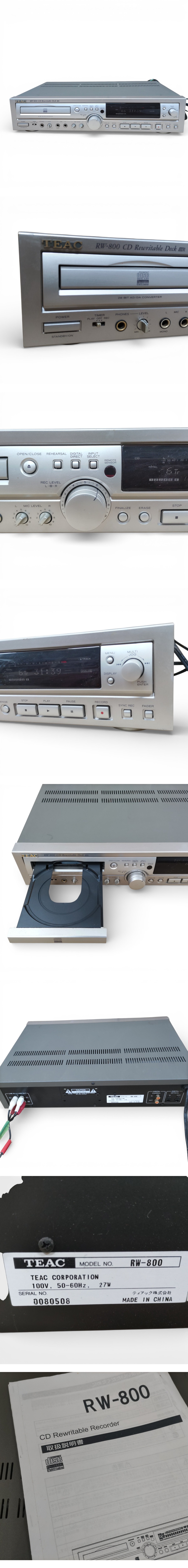 | ※必ず最後までお読みください。 Please be sure to read to the end. 一定要到最后※ | 商品概要 | -95数あるオークションの中からこちらの商品をご覧頂きまして誠にありがとうございます! ※商品説明と注意事項を必ず全てお読み頂いた後にご入札下さい※ 引き続き 安心できる気持ちの良いお取引を心掛けてまいりますのでどうぞ 宜しくお願い致します! 色んなジャンルの商品を多数出品しておりますので、こちらをクリックしてご覧ください!! 東京都公安委員会 古物商許可 第307781505147号 ◎ティアック◎TEAC RW-800 CDレコーダー 通電確認済 中古現状 即発送 ※最下部にも写真掲載中なので必ずご覧下さい。 【商品概要】 多彩な機能を搭載したCDレコーダー。 リハーサル機能を搭載しており、シンクロ録音時の録音開始ポイントやオートトラックによるトラックの切り替りポイントがディスクに書き込まれる前に確認・調整できます。 No Disc状態や再生専用ディスクが挿入されている場合でもリハーサル動作が可能となっています。 デジタル入力とアナログ入力のミキシングが可能です。さらに、マイクミキシングも可能なL/R独立マイク入力端子を搭載しています。 ミキシングはデジタル領域で行われるため、音質の劣化を抑えてバランス調整や音量調整ができます。 デジタルダイレクト機能を搭載しており、サンプリングレートコンバーターをスルーし、さらにCDなど44.1kHzのデジタル入力をデジタルボリュームを介することなくダイレクト録音できます。 これによりHDCDなどのオリジナルデータを損なわずに録音できます。 DA/AD変換部には24ビットAD/DAコンバーターを搭載しています。 サンプリングレートコンバーターを搭載しており、CD/BS放送やDATなどのCDと異なるサンプリング周波数のソースやピッチコントロールのかかったデジタル信号が入力された場合、それぞれのサンプリング周波数を44.11kHzに自動変換して録音します。 4倍速ファイナライズ機能を搭載しており、ファイナライズ時間を短縮しています。 また、ERASEやREFRESH時も同様な処理が可能です。 デジタルRECボリュームを搭載しています。 このボリュームではアナログ信号をデジタル信号に変換したあとに録音レベルの調整を行うため、アナログ入力でもデジタル領域で調整が行えます。 調整幅は-∞~+18dBとなります。 曲数指定モードを搭載しており、指定した曲数を録音すると自動的に録音を終了できます。 合計99曲までの指定が可能です。 ソースによって使い分けが可能な3種類のトラックマーク機能を搭載しています。 オートトラック・インクリメント(デジタル)はデジタル信号で曲の変わり目を検出した場合に自動的に曲番を付けることができます。 オートトラック・インクリメント(サウンドレベル)ではアナログ入力で2秒以上続けて無音状態(サウンドレベルで設定したレベル以下)になったあとに次の曲が始まった場合、自動的に曲番変更します。サウンドレベルは-24dB~-72dB、6dB間隔9ステップで変更することができます。 マニュアルトラック・インクリメントでは録音中に好きな場所で曲番を付けることができます。オートトラック録音中も操作が可能です。 モニター機能を搭載しており、リモコンによる操作で録音するソースのモニターが可能です。 フェード時間の任意の設定ができるフェードイン/フェードアウト録音機能を搭載しています。 1~24秒で1秒間隔で設定できます。 Rec Mute機能を搭載しています。 通常/シャッフル/プログラムの3種類の再生モードや1曲/全曲のリピート再生が可能です。 アナログ/デジタルの両方に対応したシンクロ録音機能を搭載しています。 カセットデッキやアナログプレイヤーなどのアナログ音源やCDプレイヤー、MDデッキとのシンクロ録音が可能です。