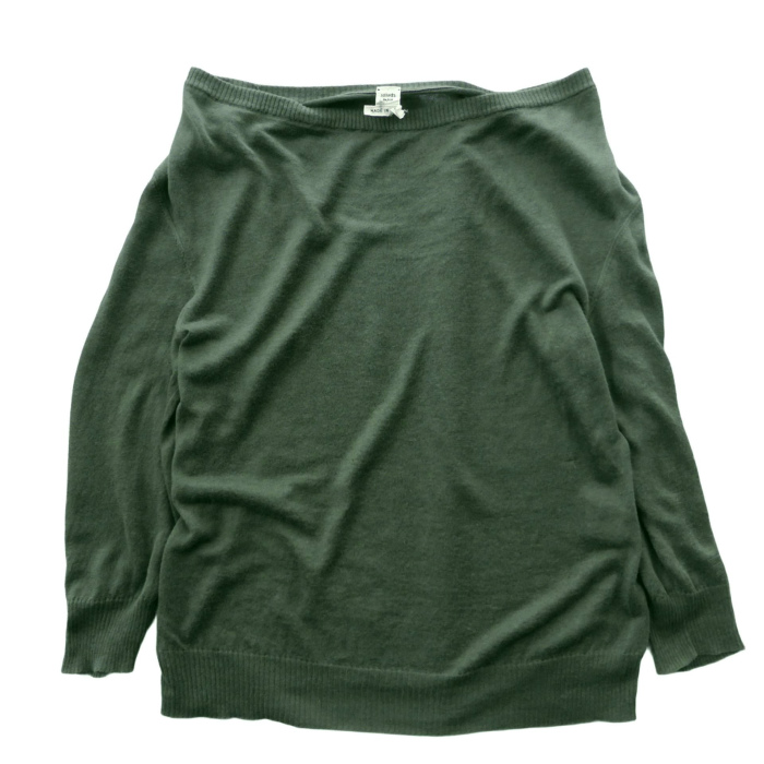 エルメス(HERMES) リネン×シルク ボートネック ハーフスリーブ ニット トップス 36 カーキ ウェア(中古)