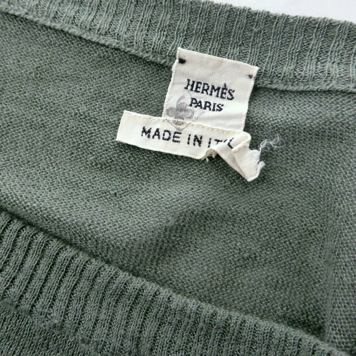 エルメス (HERMES) リネン×シルク ボートネック ハーフスリーブ ニット トップス 36 カーキ ウェア(中古) 收藏