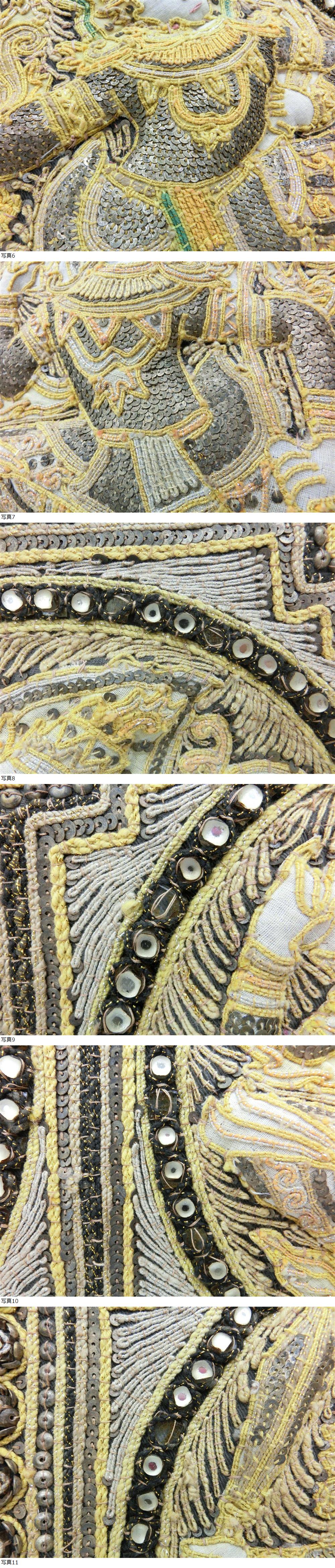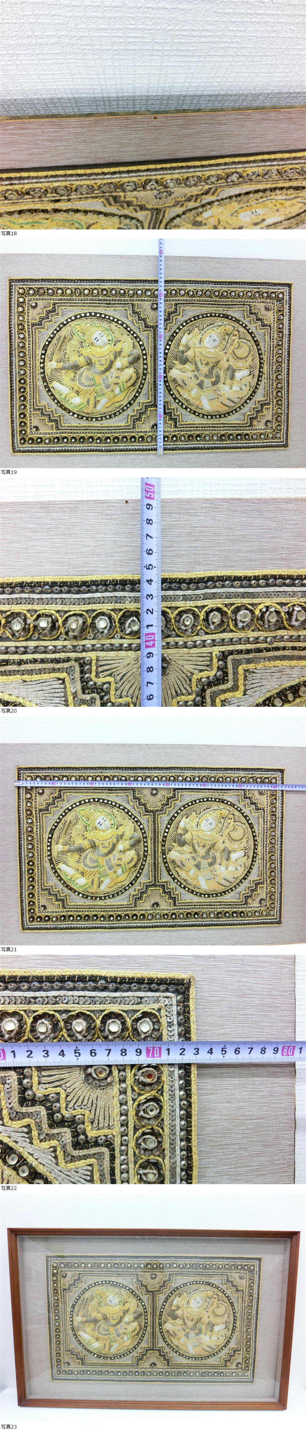 2035 アンティーク祭 ミャンマー カラガ タペストリー ビルマ ビーズ 刺繍 壁飾り 飾り布 額縁 kalaga Tapestry エスニック インテリア 收藏
