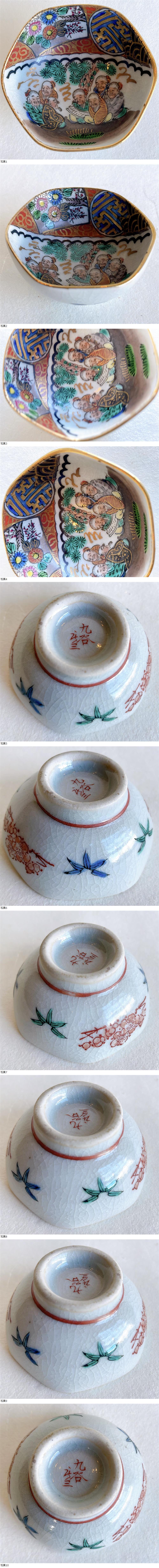 | 九谷焼 名工 九谷庄三 盃 猪口 彩色金襴手 竹林七賢図 唐人 花鳥図 骨董 |