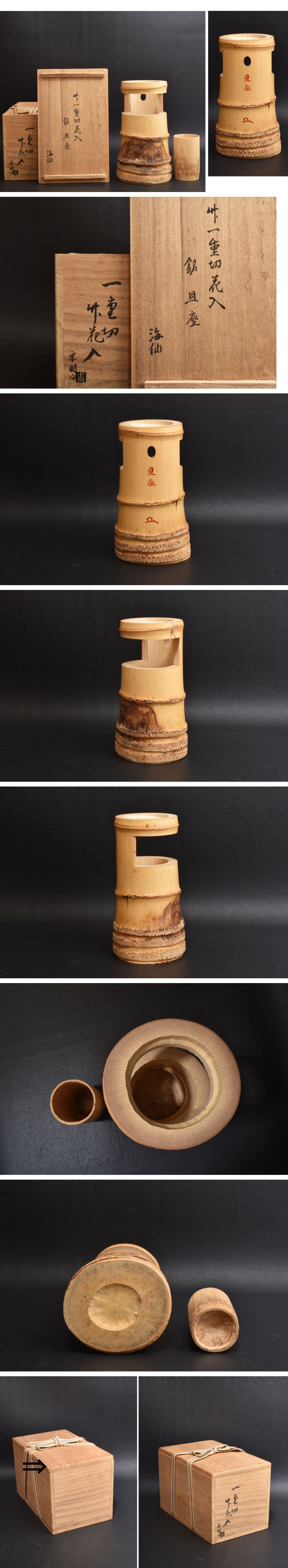 6303 竹一重切花入 海仙書付 宗明作 銘:且座 共箱 裏千家 收藏