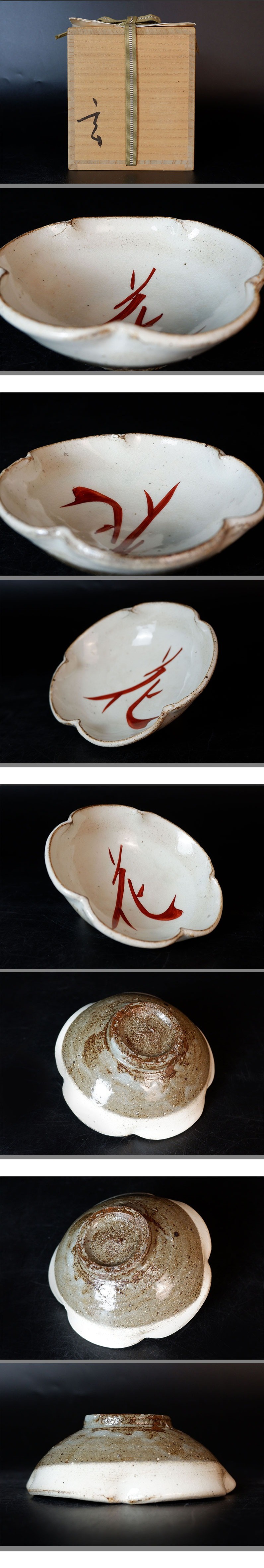 【MKA】人気作家 小林東五 粉引赤絵花字皿 五 美品 共箱 対州 高麗陶 懐石 料理屋 真作保証 收藏