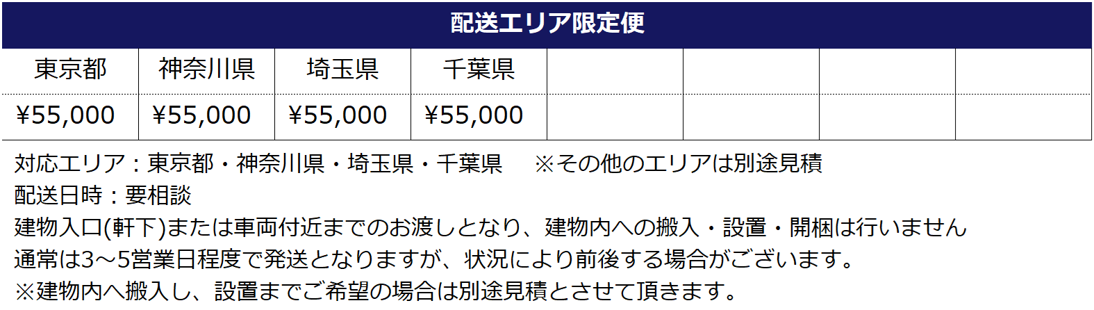 ※離島等の場合、配送可否含めて確認させていただきます。 ※同梱発送について… 同梱発送は、できる範囲で対応させて頂いております。 同梱したものが170サイズを超える荷物はそれ以外の混載便にて発送とさせて頂きます。 家具など大型商品は配送事故防止の為、同梱発送は行っておりません。 ※大量購入の場合、自社配送、トラックチャーター手配や搬入設置手配、耐震施工手配、養生手配などご相談ください。 |