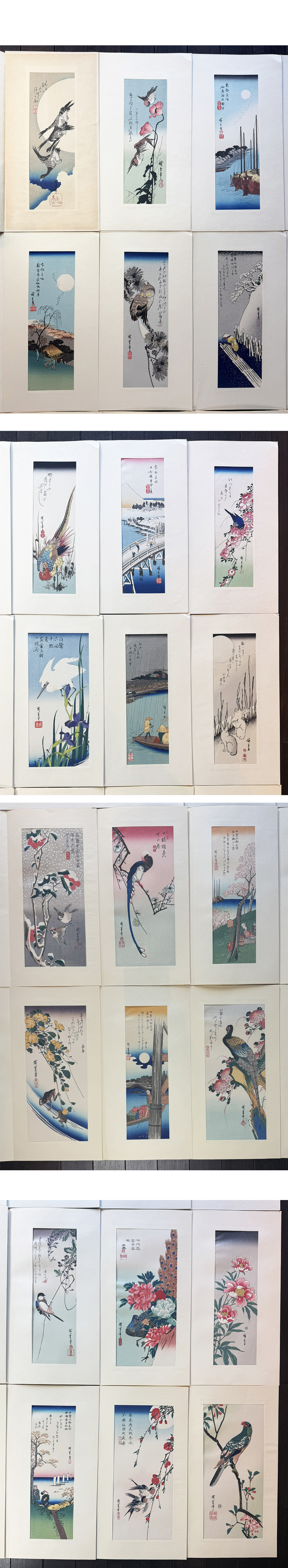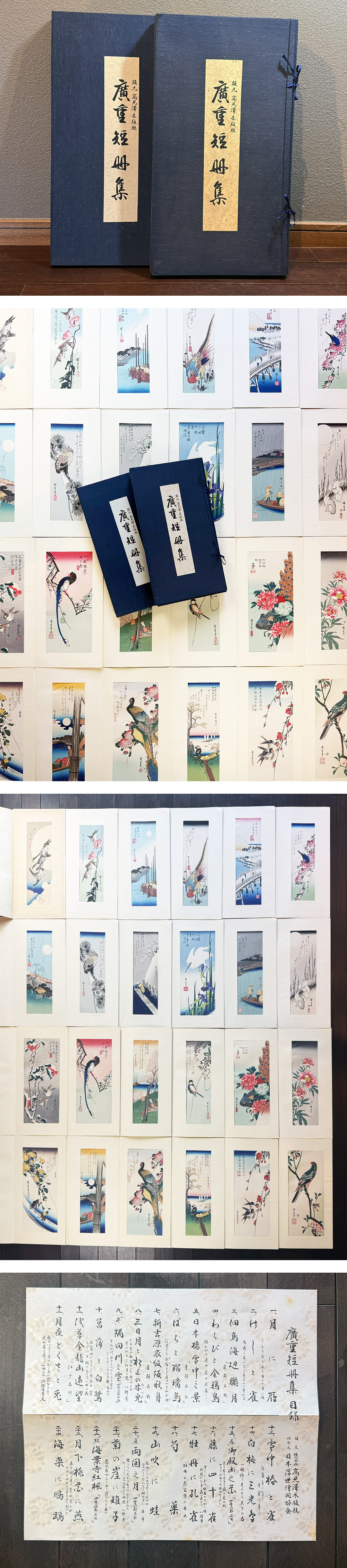 復刻木版画◆廣重短冊集 2冊全24枚 木版画 高見澤出版社 カバー台紙付 日本浮世絵同好会 額付 浮世絵 歌川広重 目録付き 貴重希少品 收藏