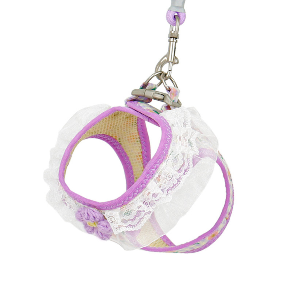 ☆ パープル ☆ L ☆ ペット 犬 ハーネス リード付き かわいい ハーネスリード 犬 かわいい ハーネス リード付き ハーネスリードセット 收藏