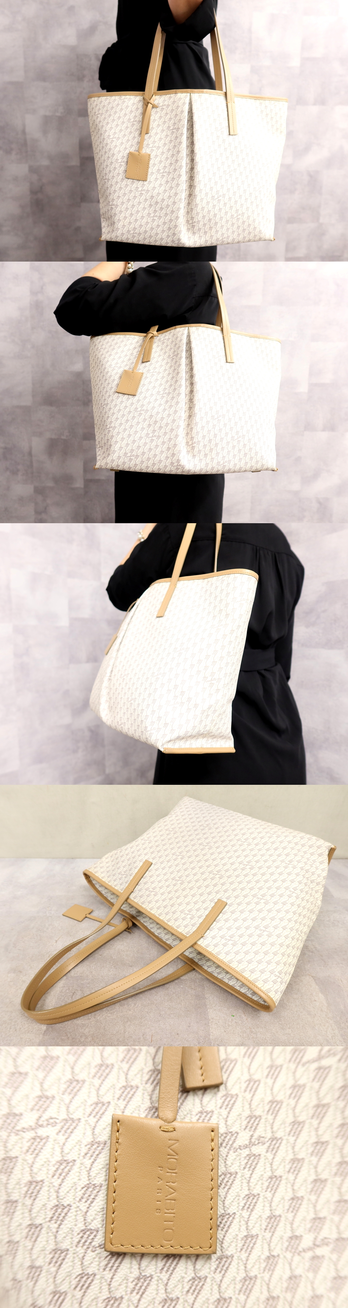 ●超美品●MORABITO モラビト●オートグラフ PM●PVC カーフ レザー 本革●トート バッグ●ホワイト グレー●A4 収納 かばん●Js67212 收藏