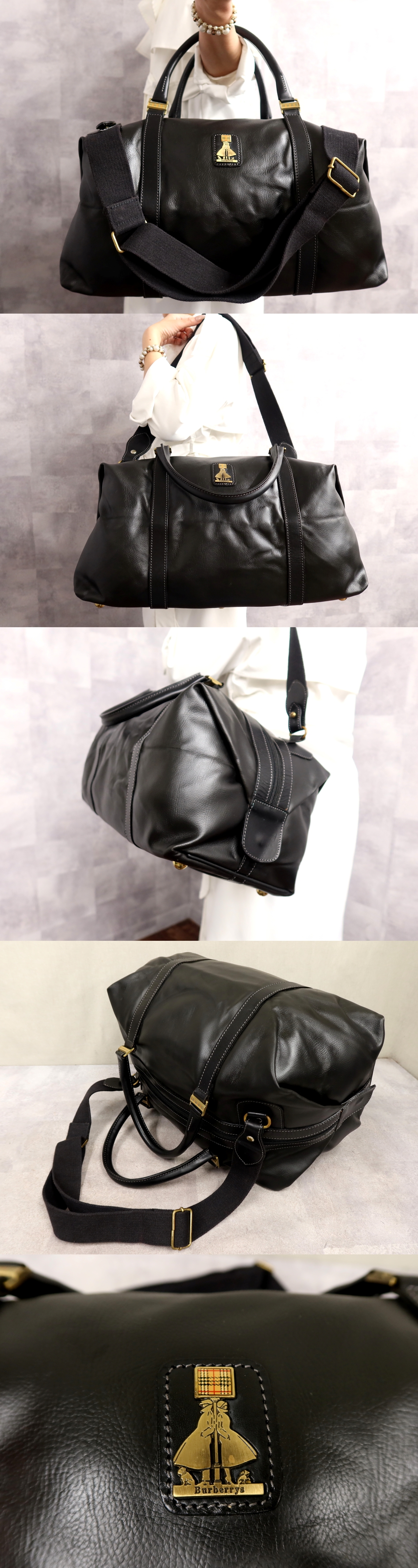 ●超美品●BURBERRY バーバリー●ロゴ金具●内ノバチェック●カーフ レザー 本革●2way ボストン バッグ●黒●ゴールド金具●Js67186 收藏