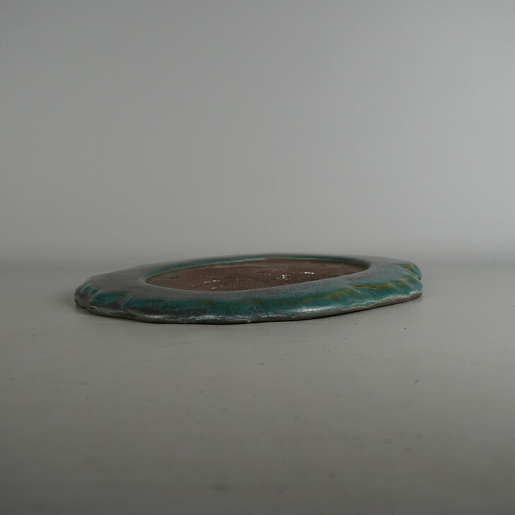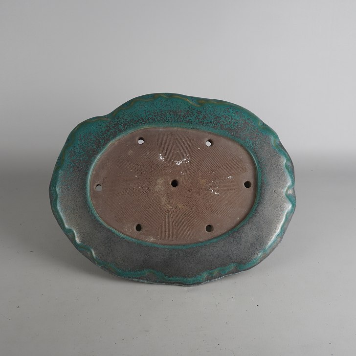 【中古】盆栽鉢 常滑 山秋 中型 長辺 約 33cm 変形 楕円鉢 釉薬 現品 中古鉢 收藏