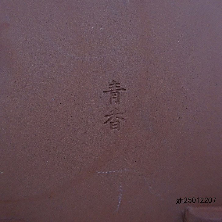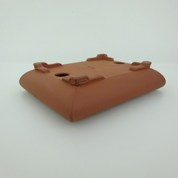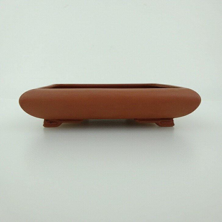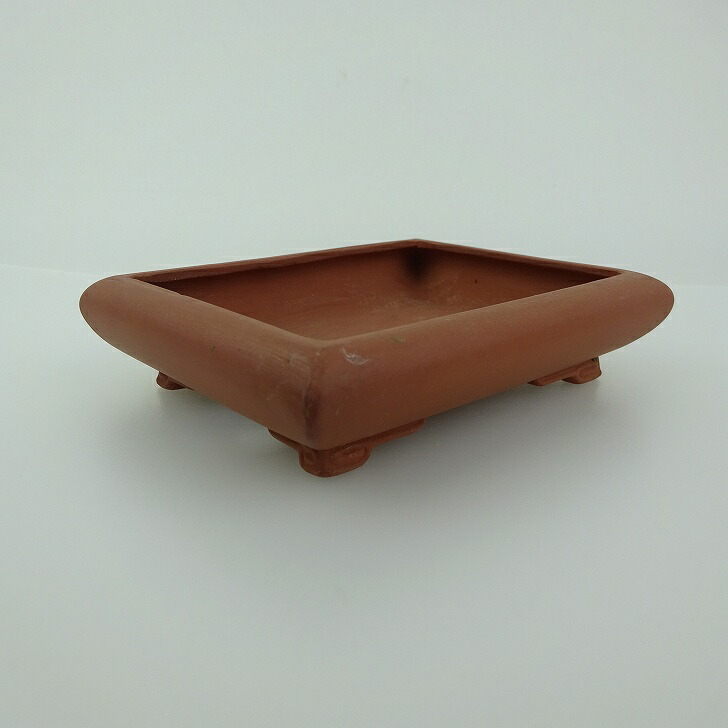 【中古】 盆栽鉢 青香 小型 長辺 約11.8cm 長方鉢 段足 泥物 現品 中古鉢 收藏