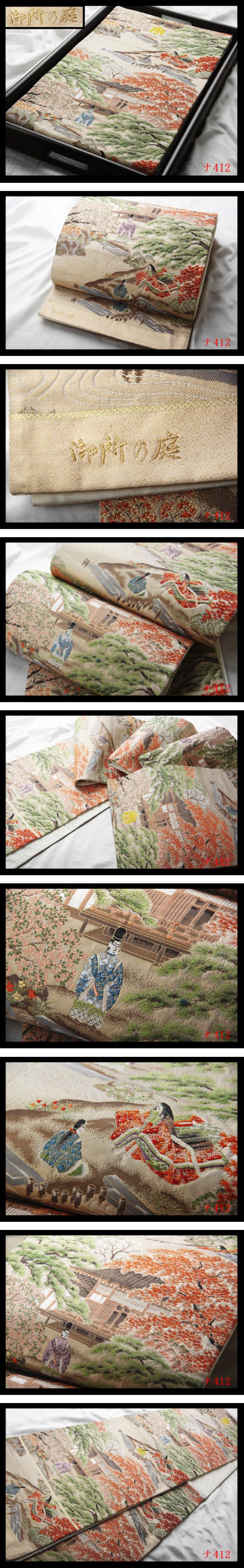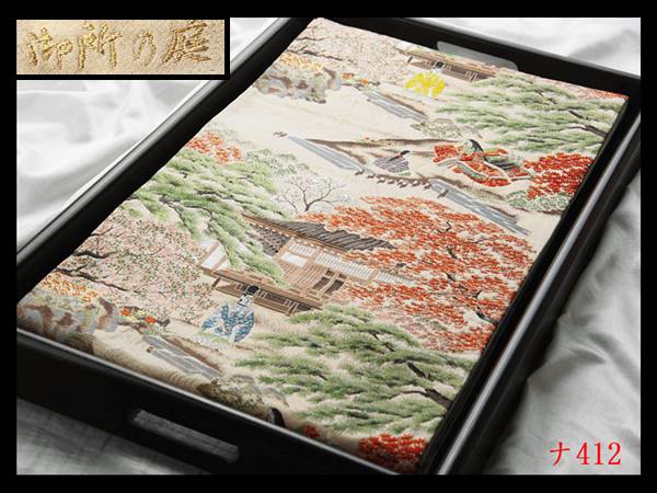 【ナ412】西陣美品 御所の庭 気品豊かに 正絹純金糸六通高級美術袋帯 検★着物名古屋帯和装小物帯締め 收藏