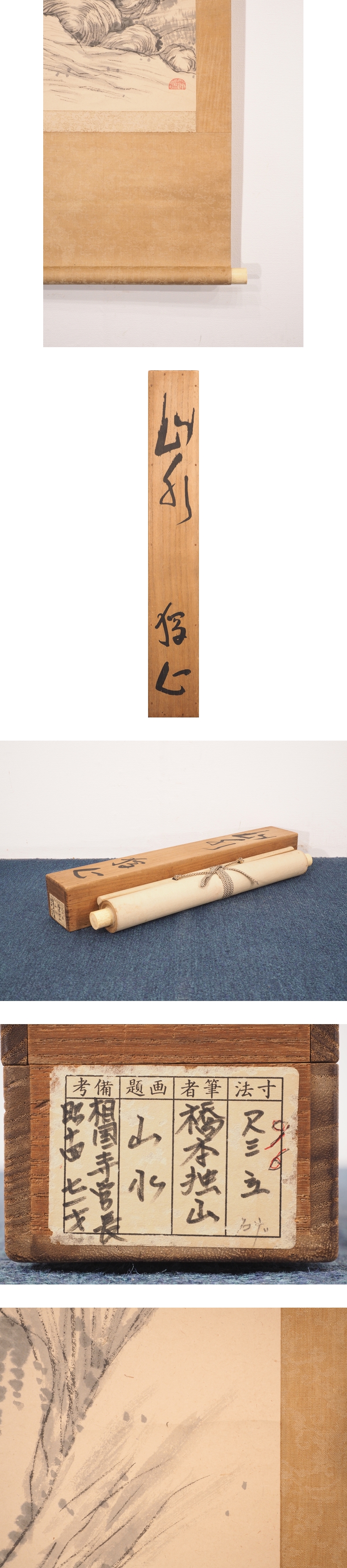 【真作】【渡鹿庵】[橋本独山] 16977 掛軸 日本画 水墨山水画 合箱 紙本 風景画 臨済宗 相国寺 新潟 在銘 收藏