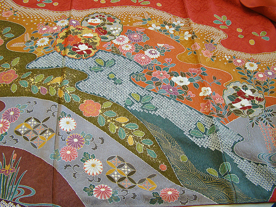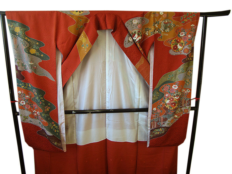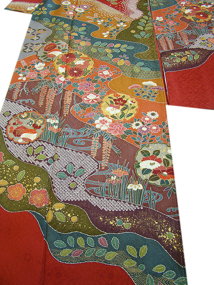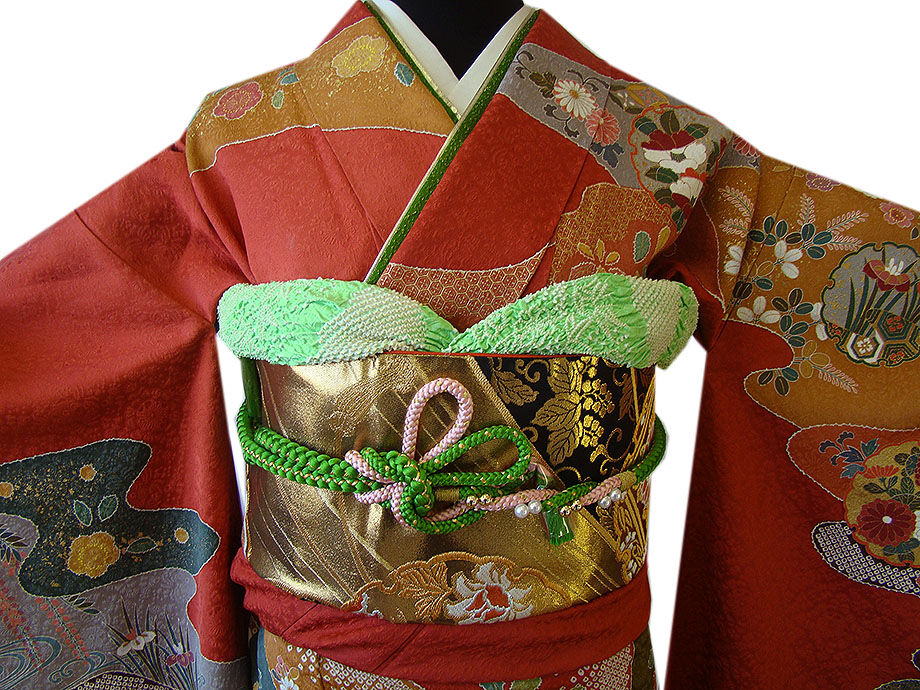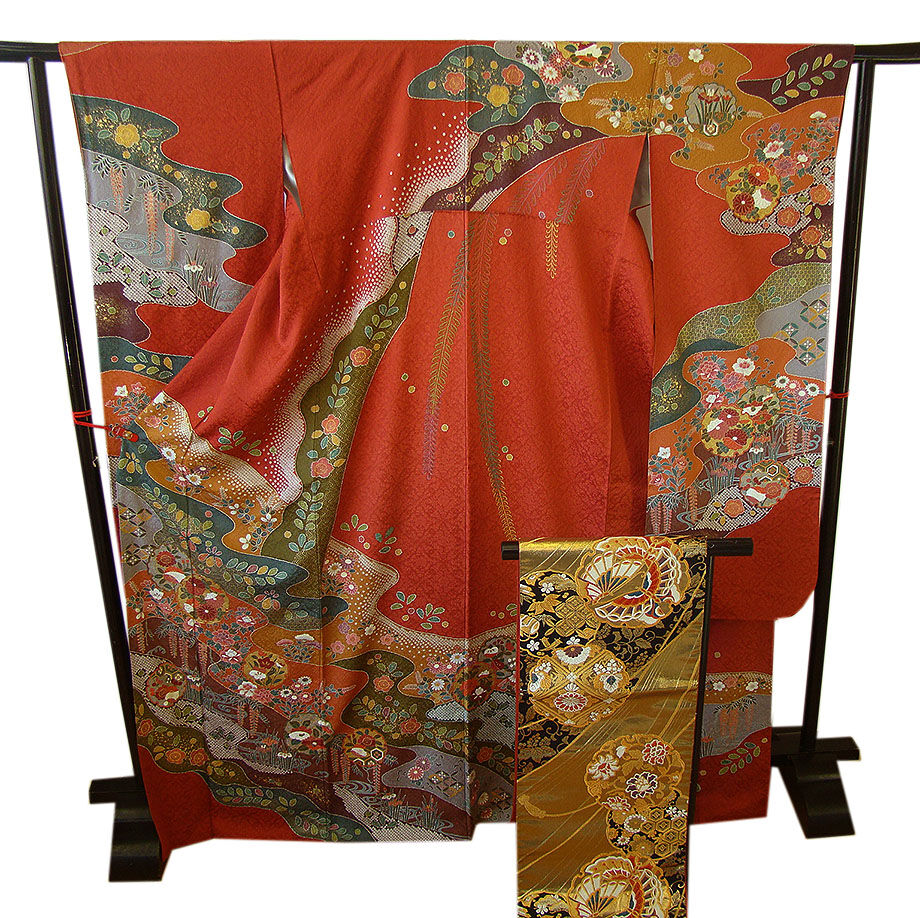 時代屋 裄67.5cm 成人式 紋意匠地 振袖 西陣織 袋帯 帯〆 帯揚 重ね衿 5点 セット 正絹 仕立上り 袷 156cm~162cm L366 收藏
