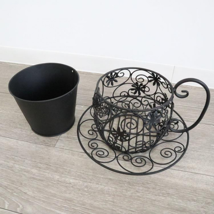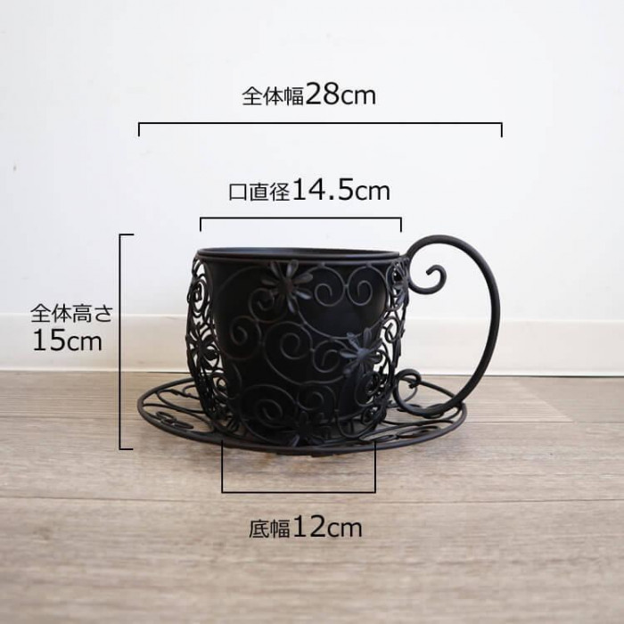 インテリア・エクステリア兼用 ティーカップ型プランター ブラック 1306IFH007 收藏