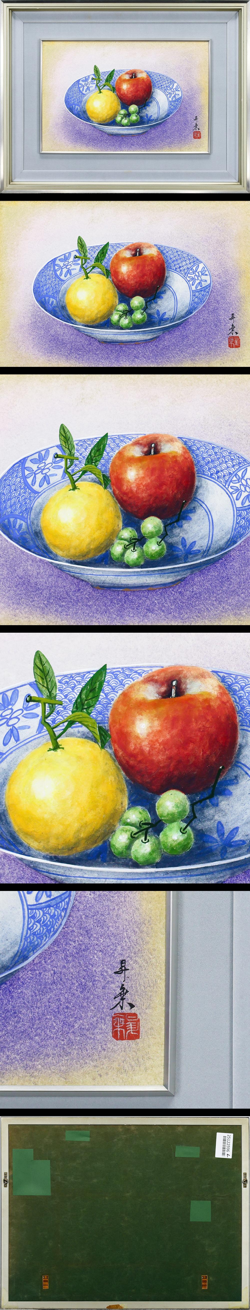 【真作】【WISH】五十川昇乗 日本画 約6号 ◆染付に映える瑞々しい果実 〇師:青木大乗 日乗会会長 文部大臣賞 紺綬褒章 #25122596 收藏