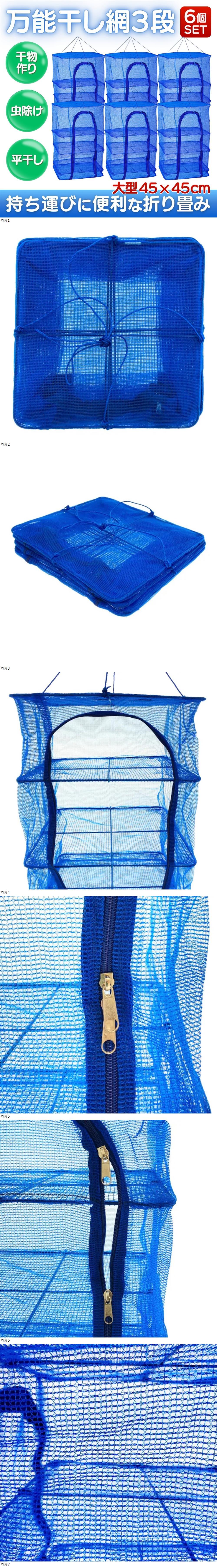 | 【6個セット】干網 40×40×65cm 大型 3段 干し網 ほしあみ 干物 乾燥 保存 マイクロメッシュ ダブルファスナー 魚 イカ 梅 干し柿 野菜 |