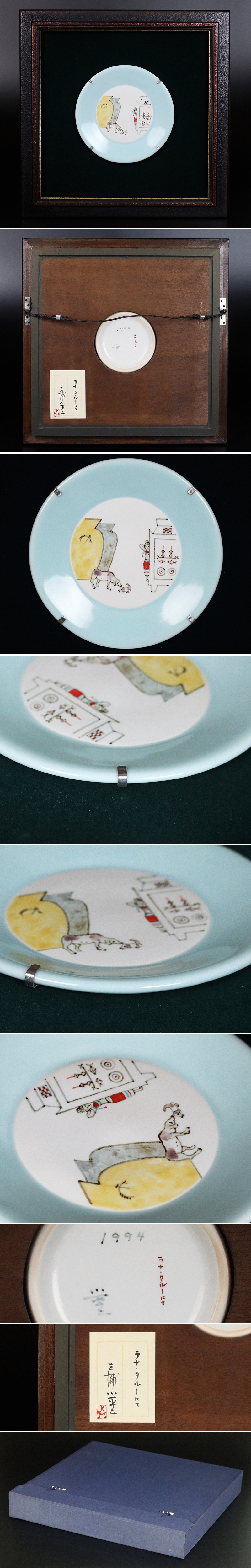 【 三浦小平二 】最上位作 青磁豆彩イヤーズプレート ラナ・タルーにて(西ネパール) 1994年 人間国宝 共シール 保証 14070 收藏