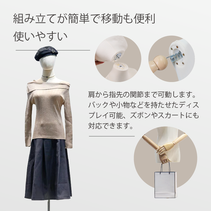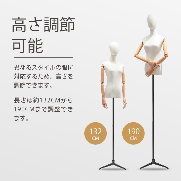 トルソー ヘッド付き 腕付き アーム付き マネキン 可動式 高さ調整可能132-190cm 衣類ディスプレイ パンツ対応 スカート対応 帽子対応 收藏