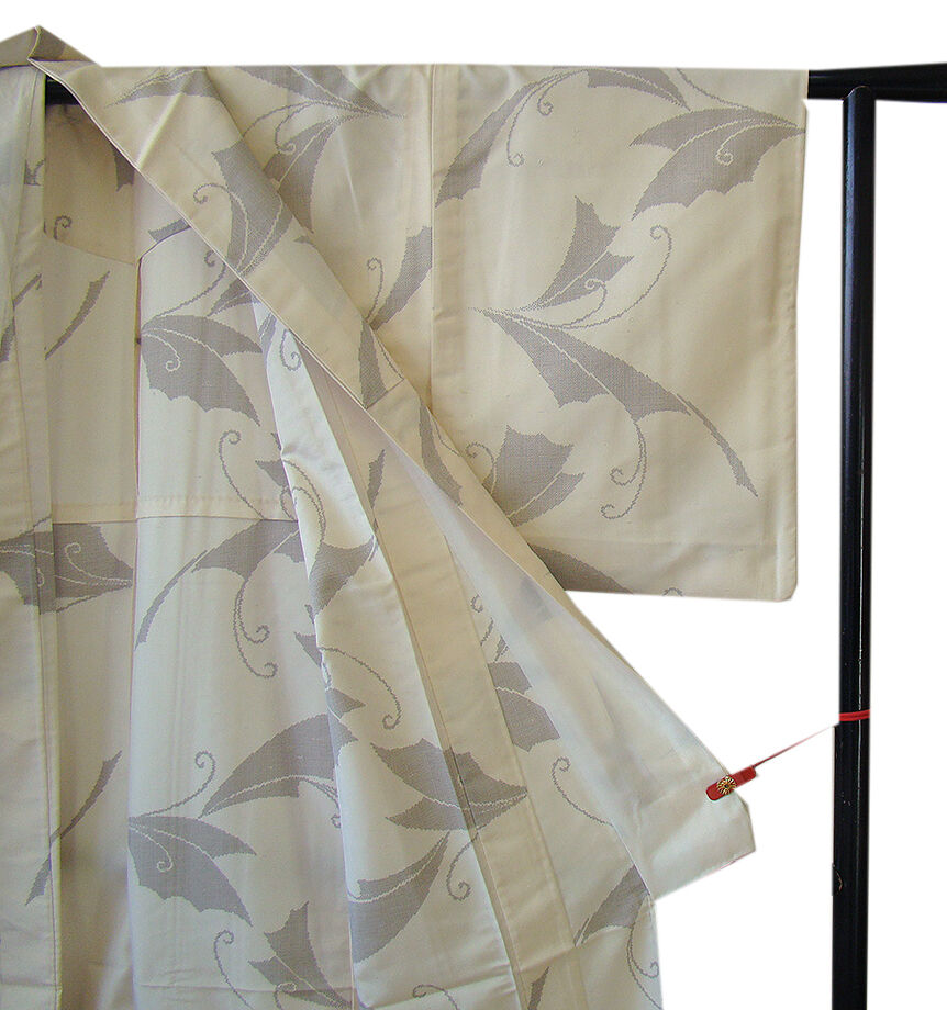| 商品説明 | こちらのお品は「単衣」ですので、5月、6月、9月にお召頂ければと思います。 着物には、大きく分けて「袷(あわせ)の着物」と「単衣(ひとえ)の着物」と「夏着物」があります。 反物(表地)を着物に仕立てるときに、裏地類をつけるものを袷の着物、 つけないものを単衣の着物と呼び、胴裏や八掛といった裏地がつかない一枚ものの着物です。 また裏地がないため、座る時などにヒップのラインが目立たないよう、 居敷当て(いしきあて)の生地をつけることもあります。 居敷当ては付いておりません。 とてもしなやかでさらりとした手触り良い、独特のハリやシャリ感のある単衣仕立ての 人気の本場白大島紬となっております。 淡い象牙色地に薄墨色の極め細やかな織柄、 また、残念ながら証紙・残布はありませんが手触りや織等から本場白大島紬と思われます。 |