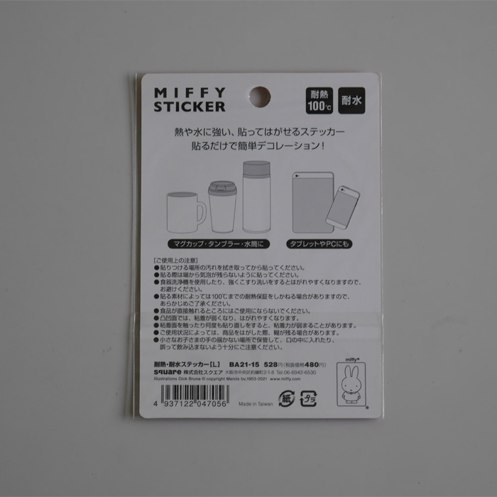 ミッフィー 耐熱 耐水ステッカー L 単品販売 グッズ シール キャラクター miffy スクエア マスキング かわいい DICK BRUNA 熱や水に強い 收藏