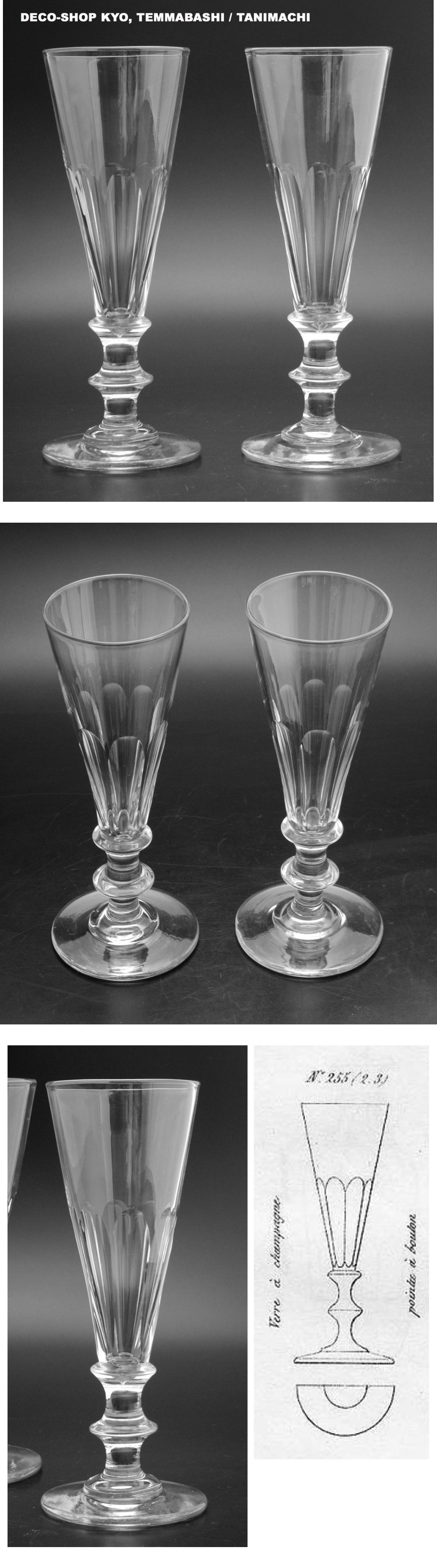 バカラ1840年代!!七月王政期!!入手困難品・上級幅広カット装飾!!Cotes Plates!!貴重シャンパンフルート、2点セット!! 收藏