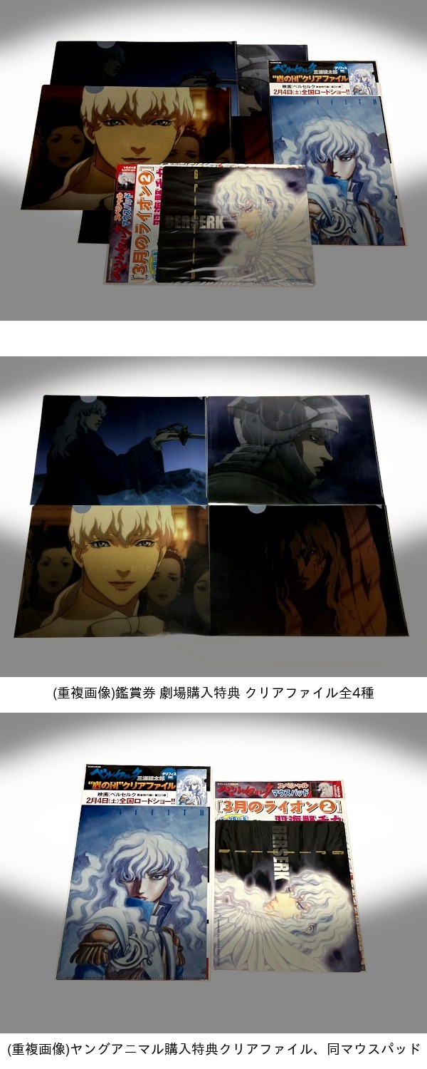 《 グリフィス メモリアルクリアファイル、ヤングアニマル店舗購入特典クリアファイル、マウスパッド 》 ベルセルク 激レア 希少 非売品 收藏