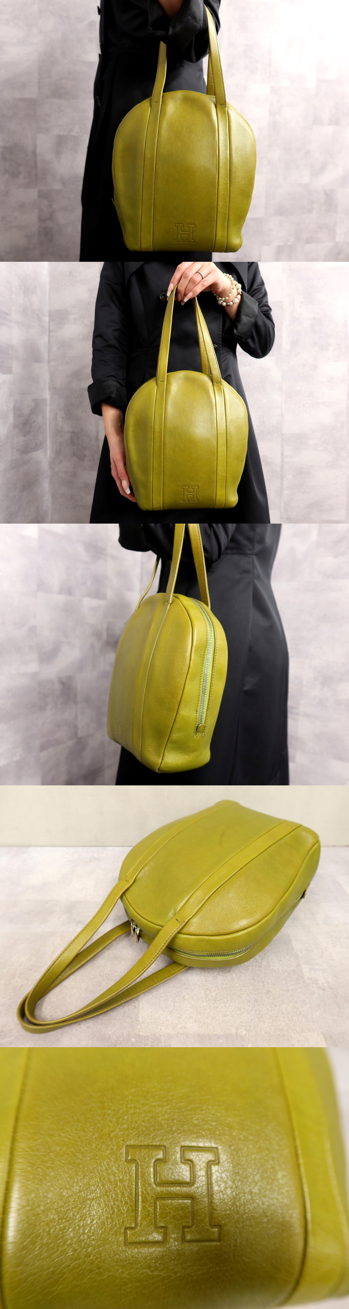 ●超美品●HIROFU ヒロフ●ロゴ型押し●カーフ レザー 本革●ハンド バッグ●グリーン系●シルバー金具●腕掛け●かばん●Js65618 收藏
