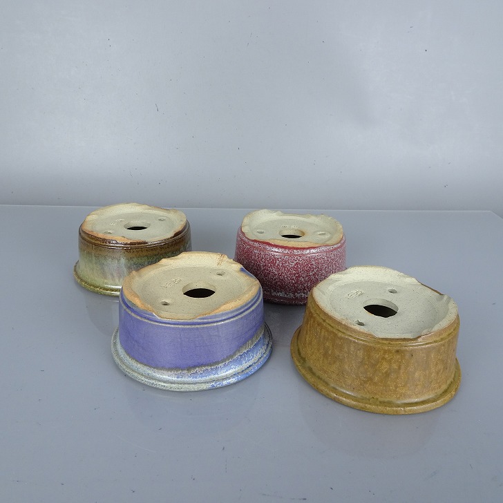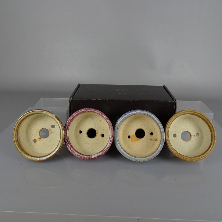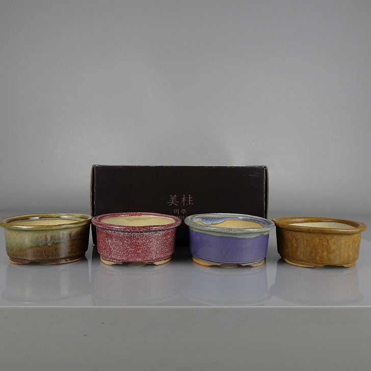 盆栽鉢 美柱 MIJU 4個セット 箱入 豆鉢 長辺 約 10cm 丸鉢 釉薬 ミニ鉢 鑑賞 観賞用 現品 新品 收藏