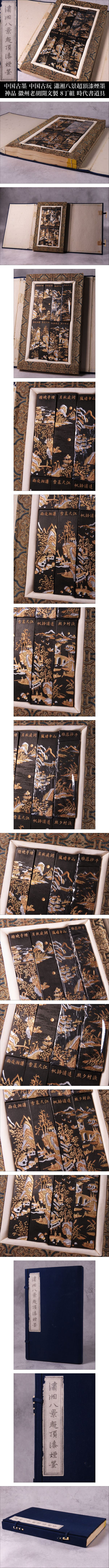 【ONE'S】中国古墨 中国古玩 瀟湘八景超頂漆煙墨 神品 徽州老胡開文製 8丁組 時代書道具 未使用品 | |||