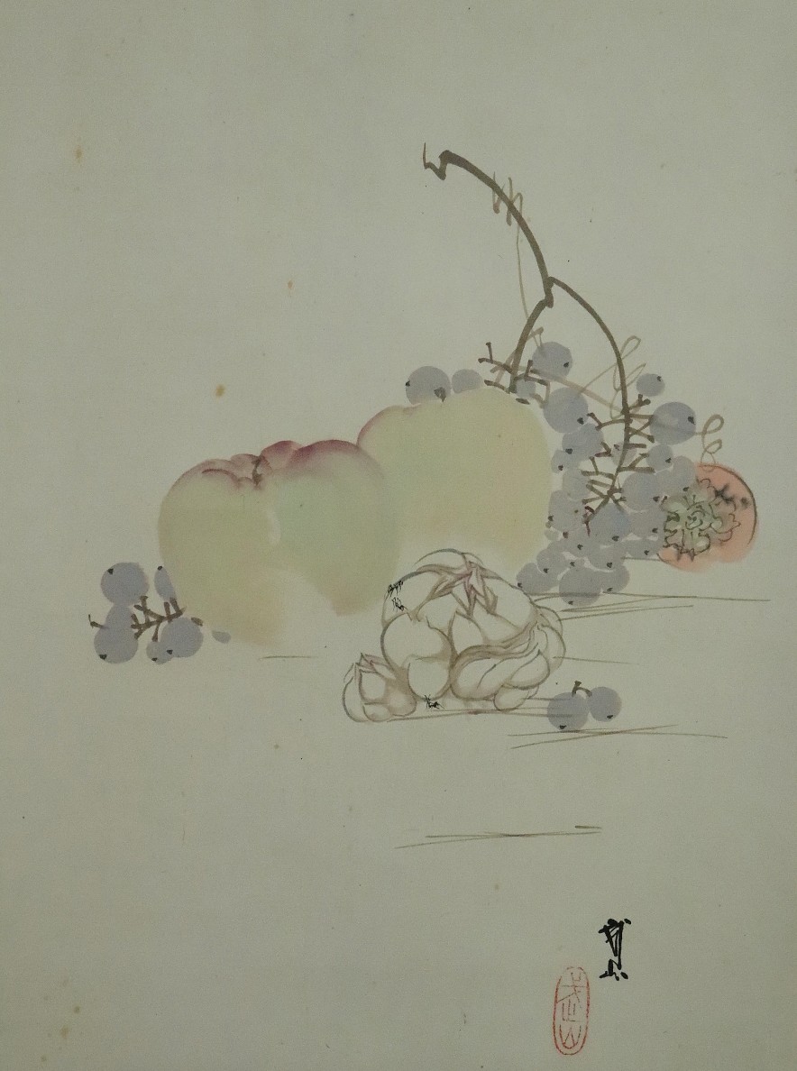 12986■【真作】木村武山 【収集家旧蔵品】 静物図 共箱 茨城の人 川端玉章師事 円山四条派 掛軸 收藏