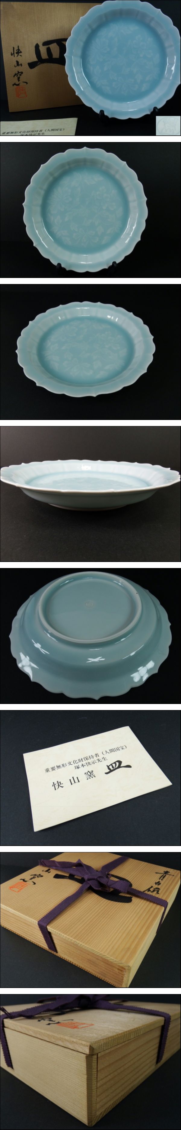 ■■快山窯 人間国宝 塚本快示 青白磁山 輪花皿 飾り皿 共箱/栞■■ | |||