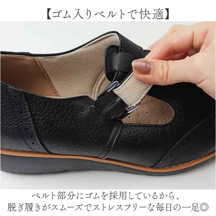 | 商品説明 | ・・【はくたびに気分が上がる】 ・ゴム入りベルトで脱ぎ履きラクラク、柔らかインソールで歩きやすいTストラップシューズ。 ・【Tストラップで足元華やか】 ・クラシカルなTストラップデザインが、どんなコーデの足元にも自然と上品な華やぎをプラス。 ・【ゴム入りベルトで快適】 ・ベルト部分にゴムを採用しているから、脱ぎ履きがスムーズでストレスフリーな毎日の一足◎ ・【ローヒールで幅広コーデ】 ・フォーマルにもカジュアルにも合わせやすいローヒールが、毎日の着こなしの頼れる主役♪ ・【やわらか底で疲れ知らず】 ・柔らかなインソールが足裏をやさしく受け止め、長時間歩いても疲れにくい心地よい履き心地〇 |