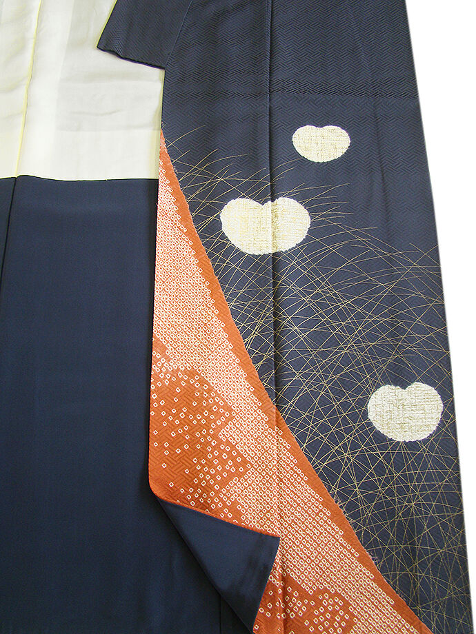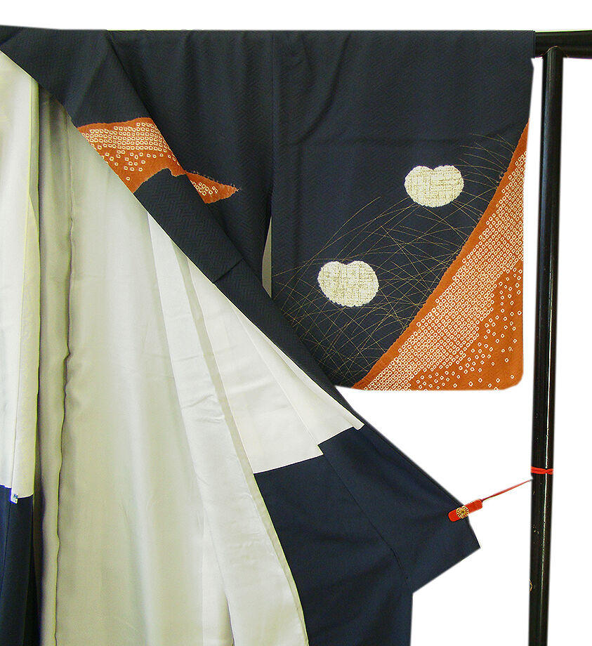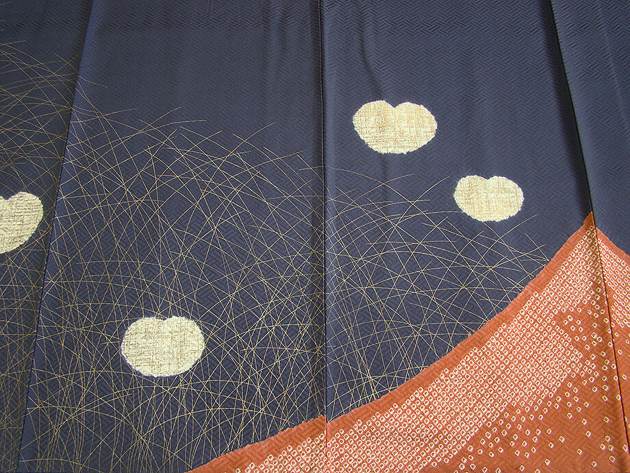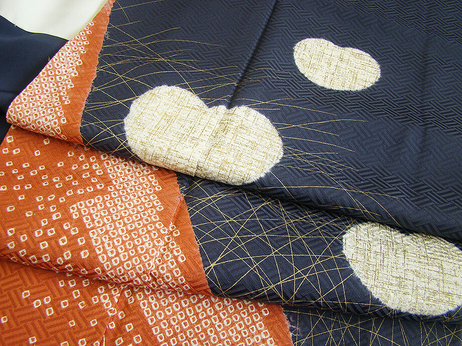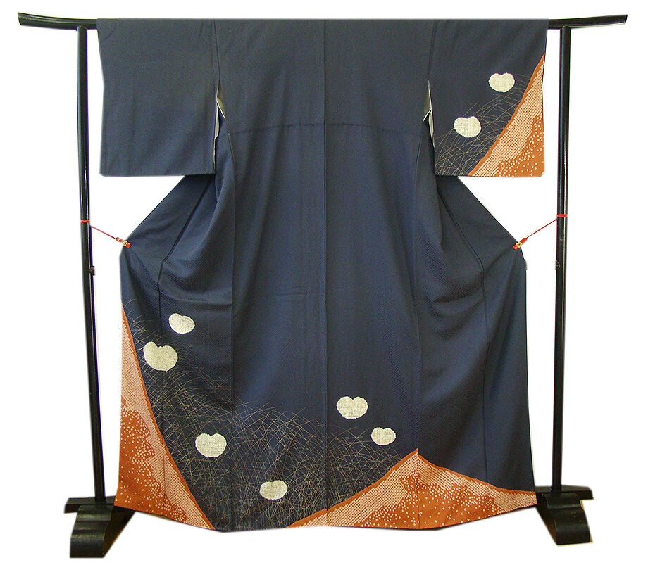 | 商品説明 | こちらのお品は「袷」ですので10月から5月までお召頂ければと思います。 とてもしなやかでぽってりとした手触りの着心地良い重めの紋意匠地の生地、 鉄御納戸色地に地模様入りに、樺色のぼかしに鹿の子絞りに金彩加工染、 八掛は共色(正絹)、幅広い年代の方にお召頂けます。 ※モデルさんの帯・小物はイメージ画像で販売は着物単品のみになります。 |