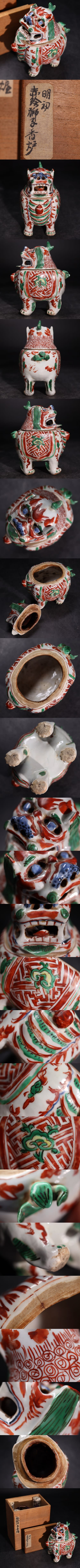 | 「 明 初 赤絵 獅子 香炉 」 木箱付 / 中国美術 色絵 香道具 煎茶道具 検索: 萬暦赤絵 万暦赤絵 .G4254 |
