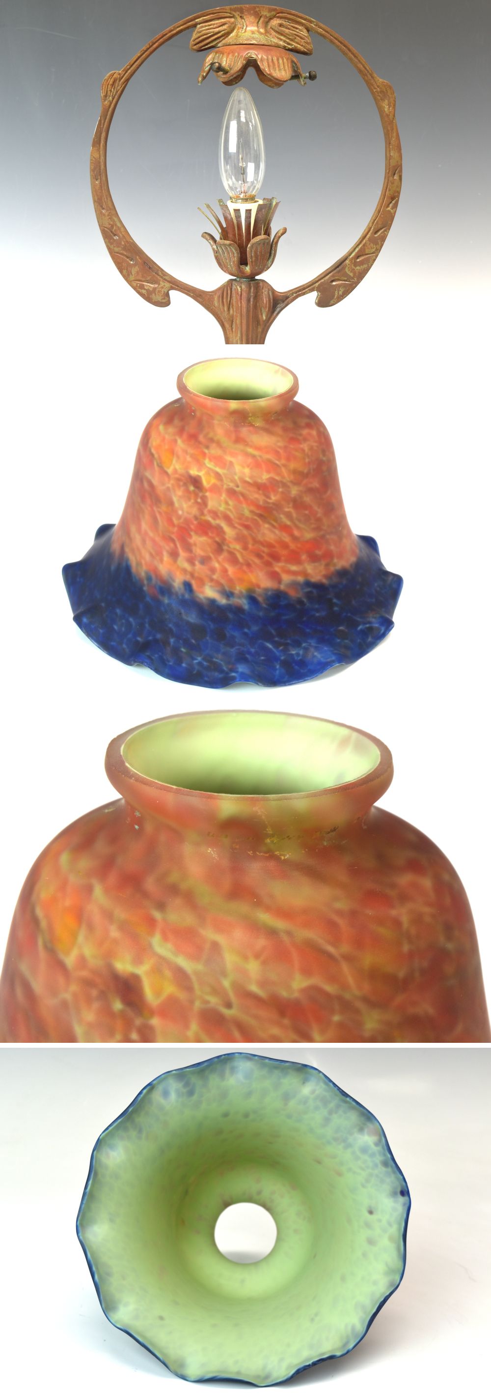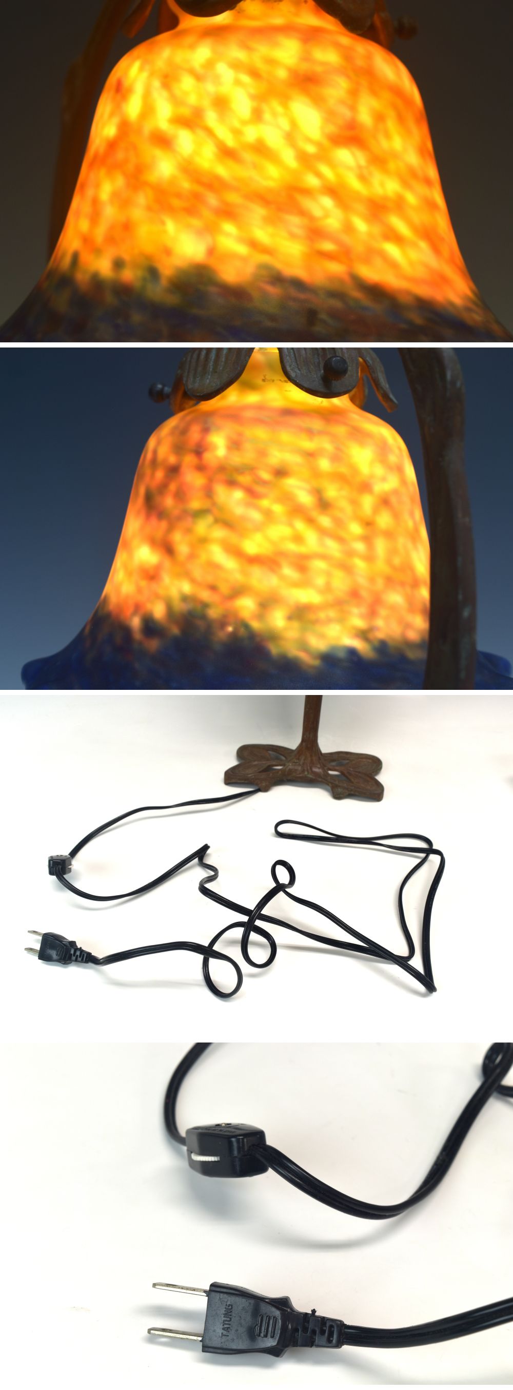 | 説明 | 時代のあるアールヌーボー様式のブロンズ台ガラススタンドランプです。 綺麗な模様のガラスのシェードで時代を経た雰囲気の良いランプです。 経年に伴う擦り傷や汚れ等ありますが全体的に目立った痛みの無い好状態です。 日本のコンセントが使えますので、すぐに使えますが古い物なので配線のメンテナンスは必要だと思います。 この機会をお見逃し無く! この他にも多数出品しておりますので宜しければご覧ください。 商品代金+消費税+送料の合計がお支払い代金となります。 |