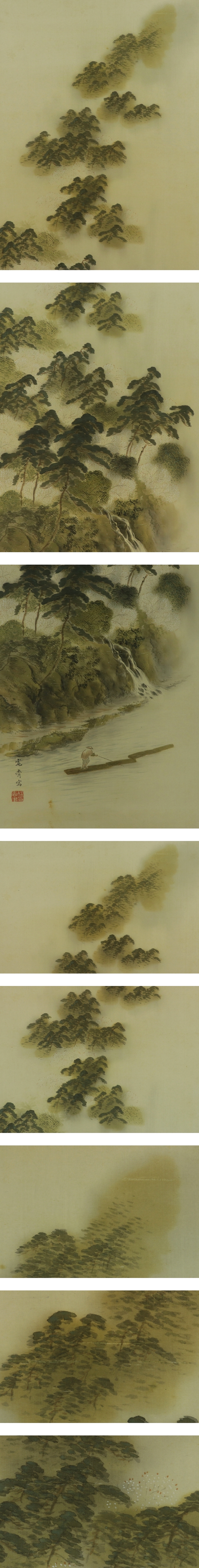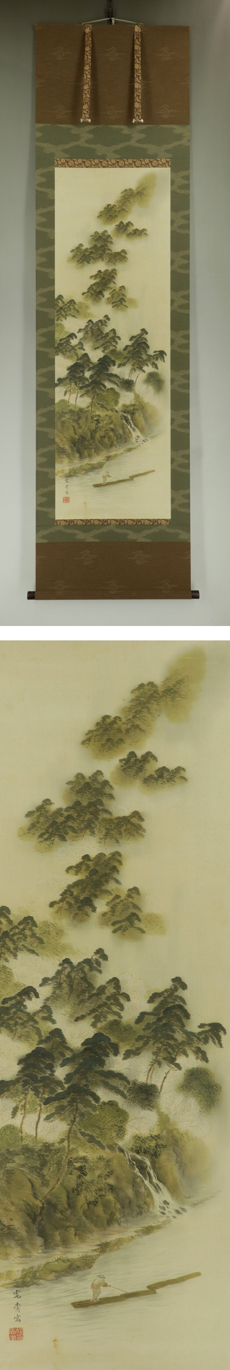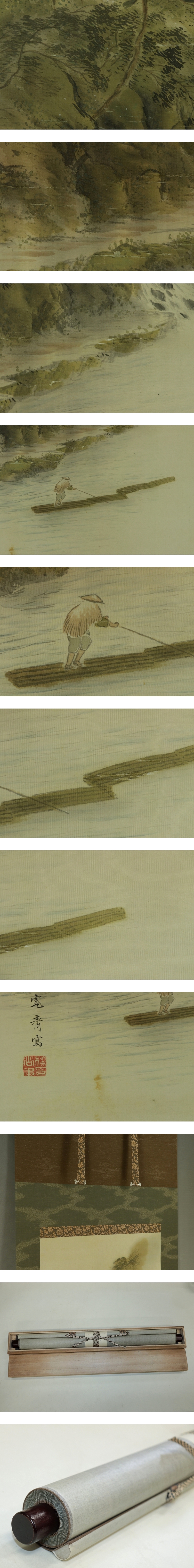 | №1504102【真作】森寛斎【嵐山筏下り図】◆絹本◆合箱◆改装済掛軸 | |